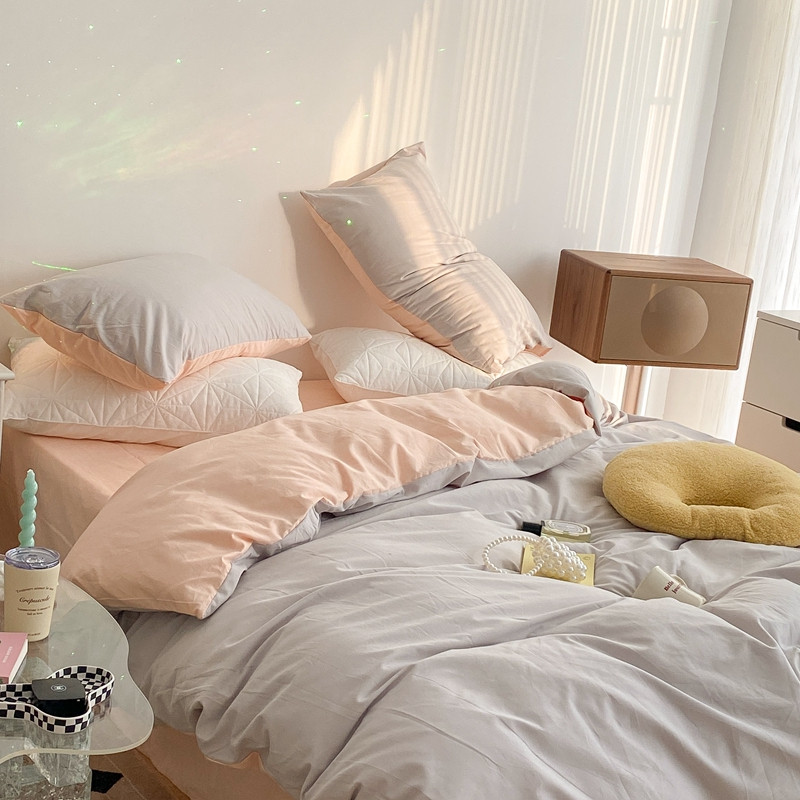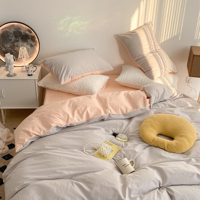 商品名称:昔可家纺 2021新款双拼加厚磨毛四件套 灰粉双拼