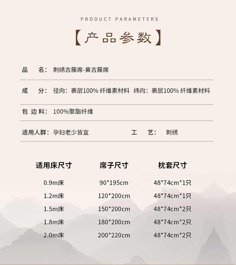 商品名称:小牛席业 2022新款刺绣古藤席系列常规款 黄古藤席