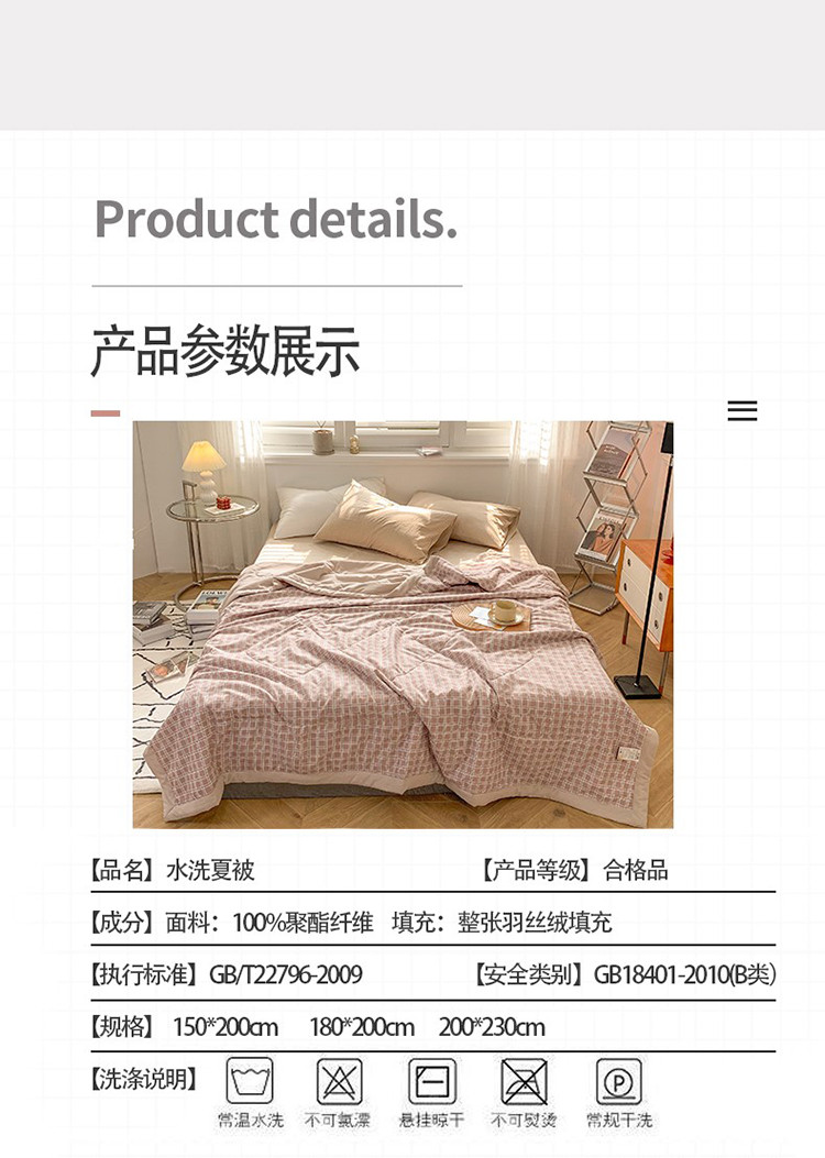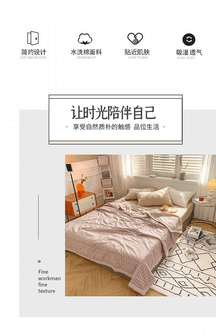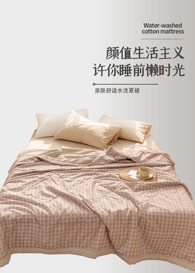 商品名称:慕尚家纺 2025新款日式简约无印风夏被夏凉被风格一 豆沙大格