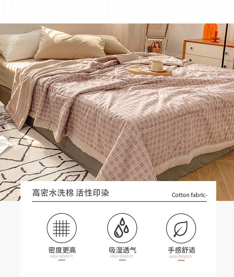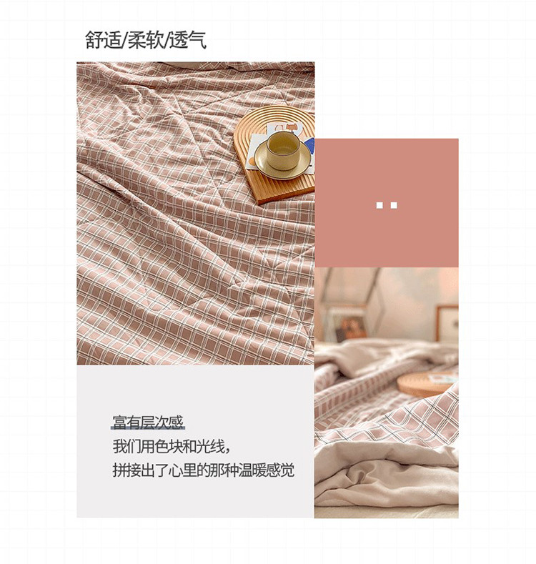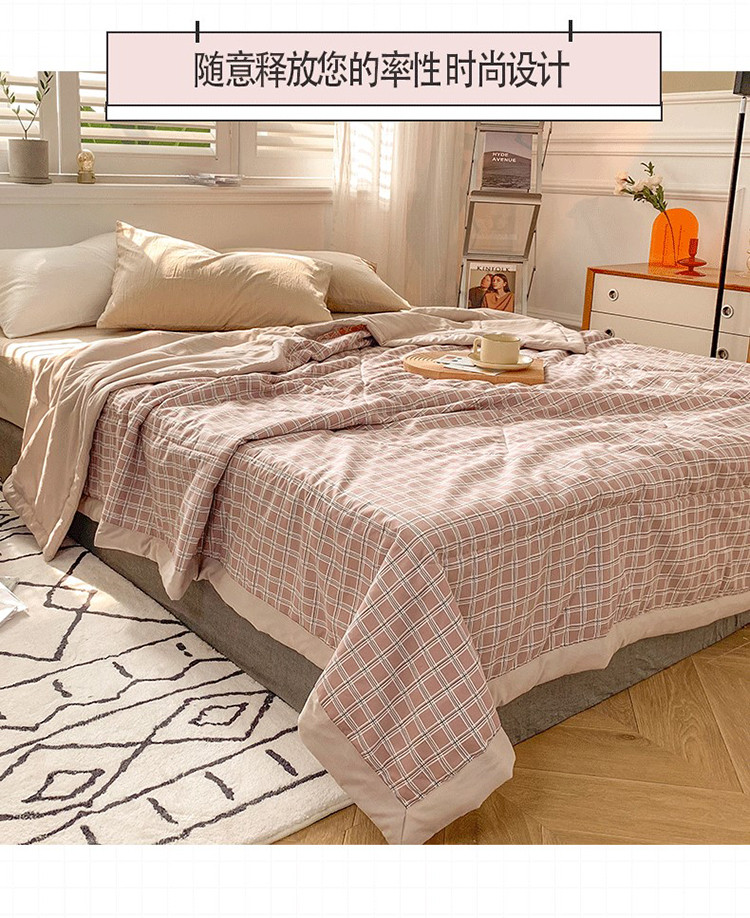 慕尚家纺 2025新款日式简约无印风夏被夏凉被风格一 豆沙大格