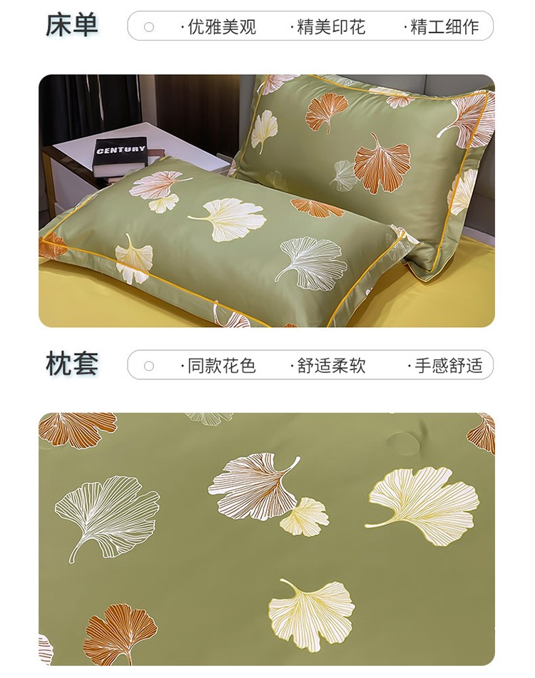 商品名称:铠畅 2022新款床单款夏被四件套 银杏叶