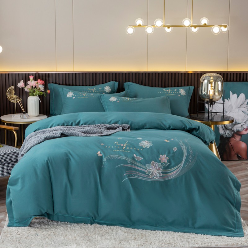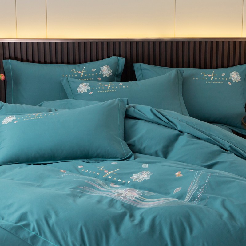 商品名称:优姿2022新款100S长绒棉宽边绣花四件套似锦年华-孔雀蓝