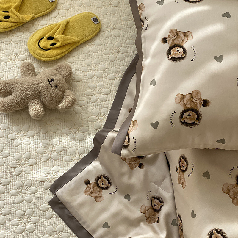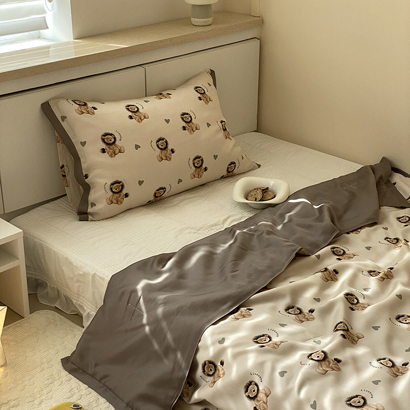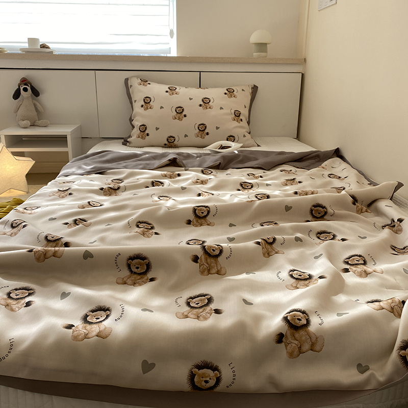 汇庭 2022新款单人天丝卡通印花夏被子被芯 比得狮子