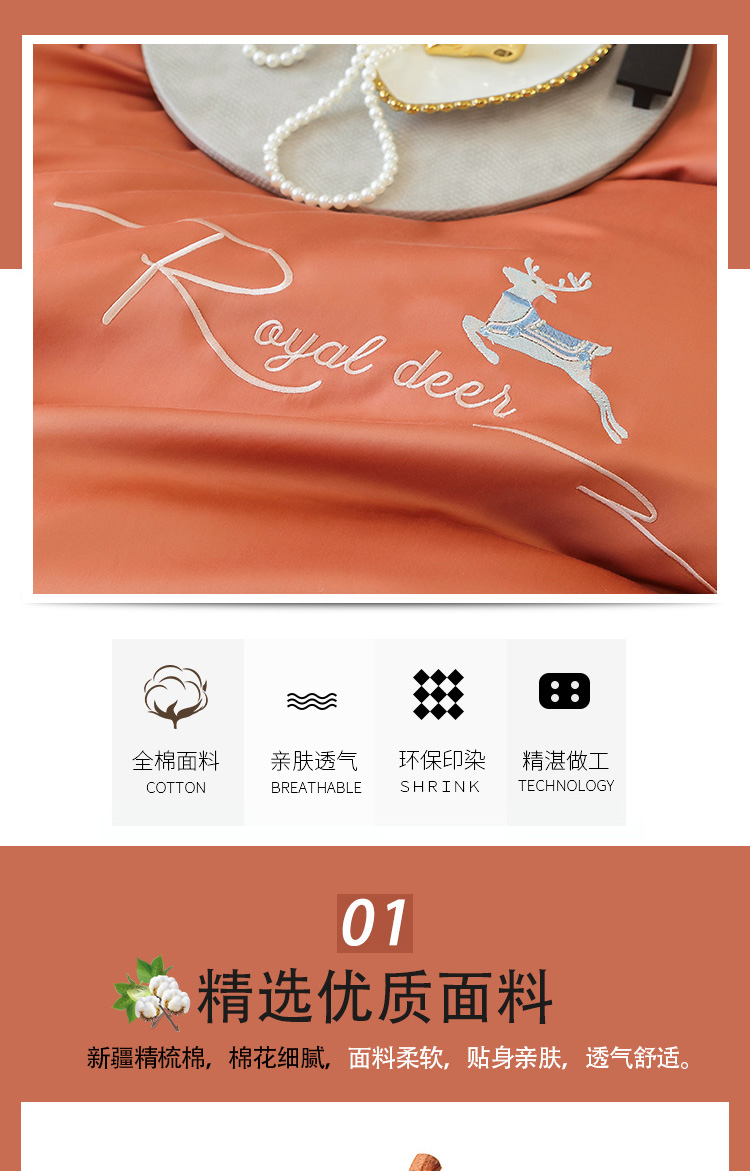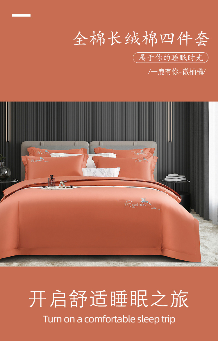 商品名称:芊寻家居 2024新款全棉长绒棉四件套 一鹿有你-微柚橘