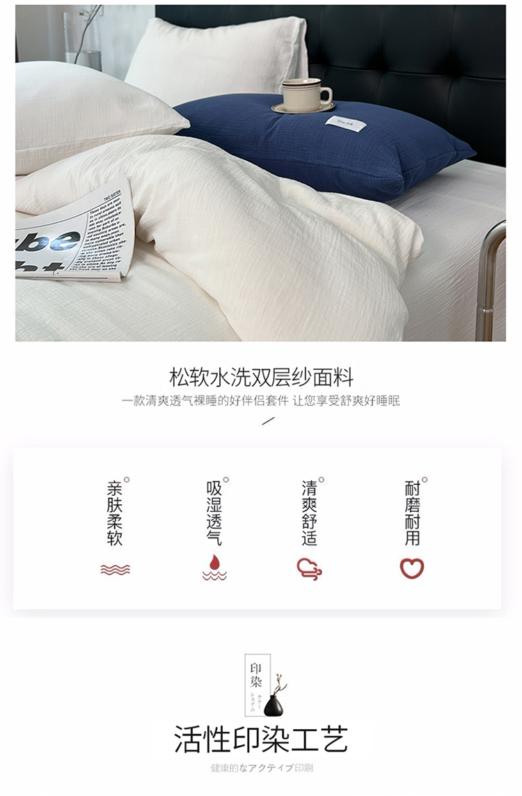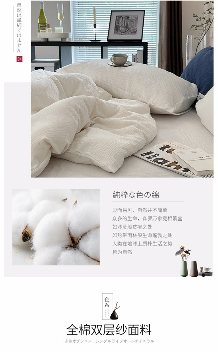 当前位置: 91家纺网 > 商品网购 > 床品套件 > 四件套 > 全棉普通四件套 > 山舍家居 2022新款双层纱布四件套 透白