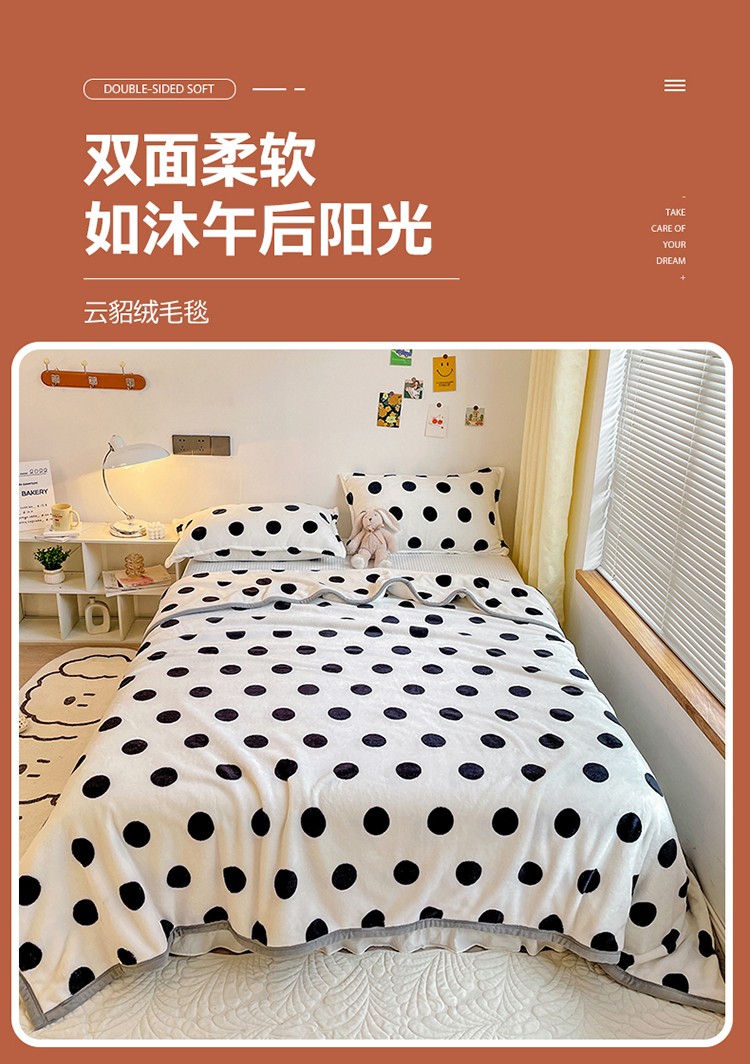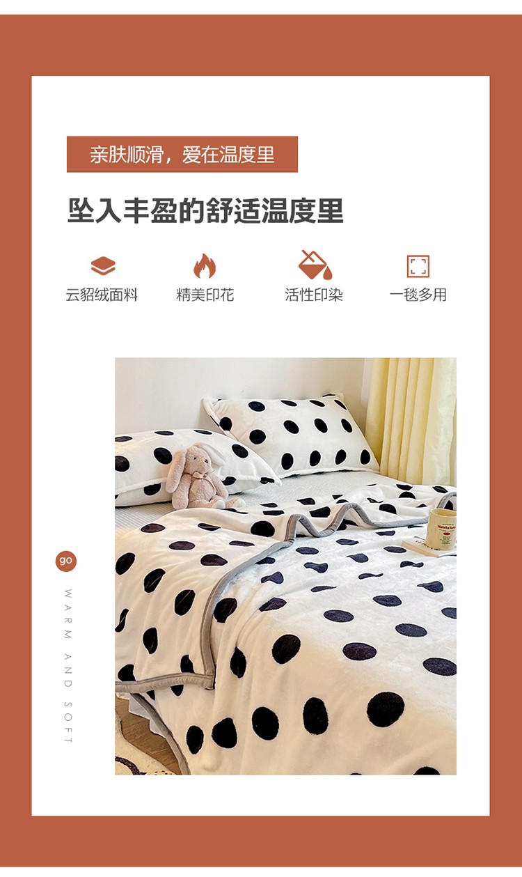 当前位置: 91家纺网 > 商品网购 > 毛毯休闲毯绒毯 > 毛毯 > 雅萱家纺 2022新款印花云貂绒毛毯 白波点