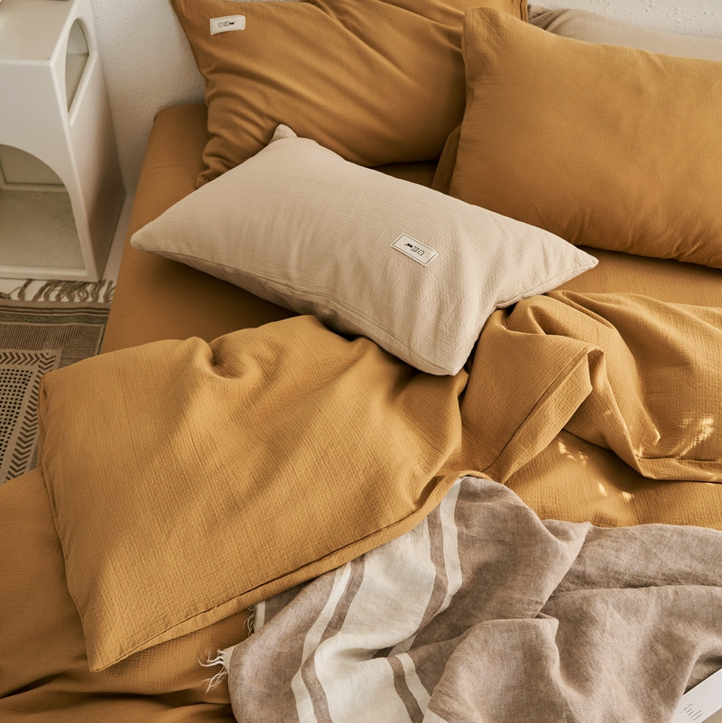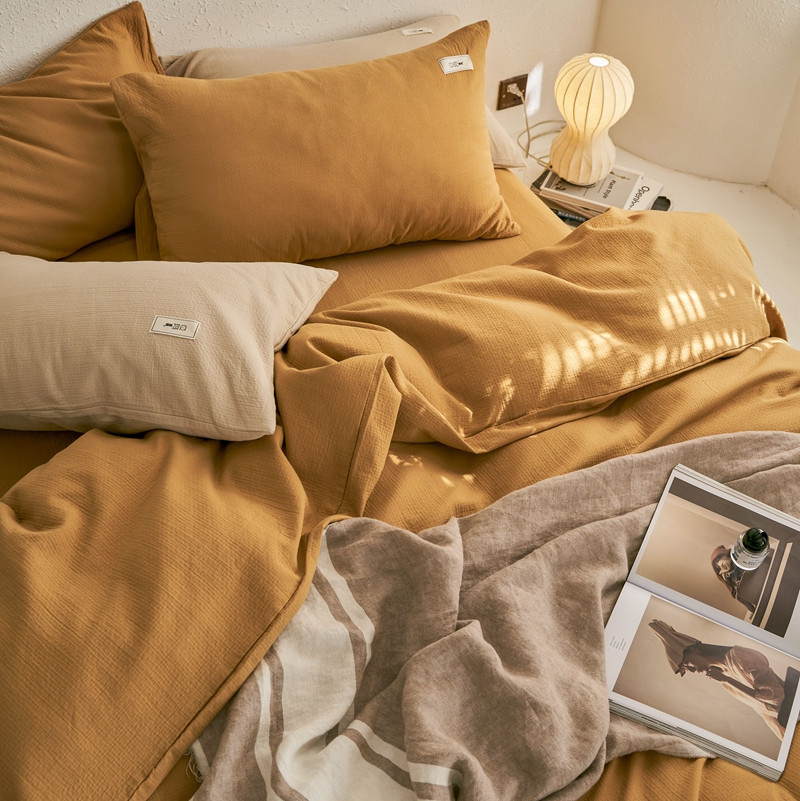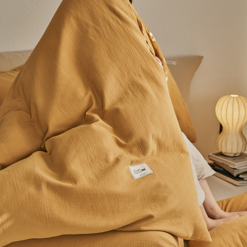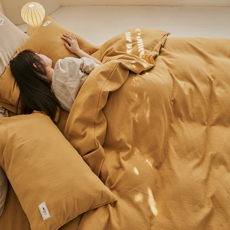 商品名称:简家居 2022新款冬季全棉空气层小提花四件套 姜黄