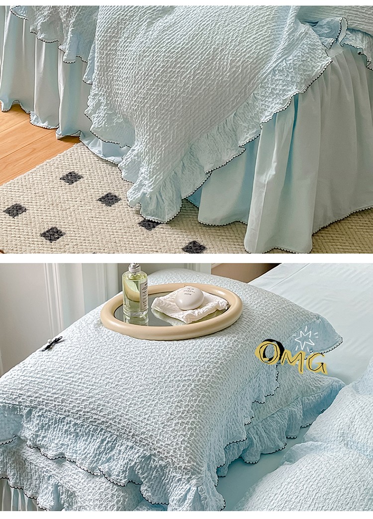 (总)婳庭家居 2024新款全棉水洗棉泡泡纱四件套,泡芙球球-白,泡芙球球-粉,泡芙球球-黄,泡芙球球-蓝