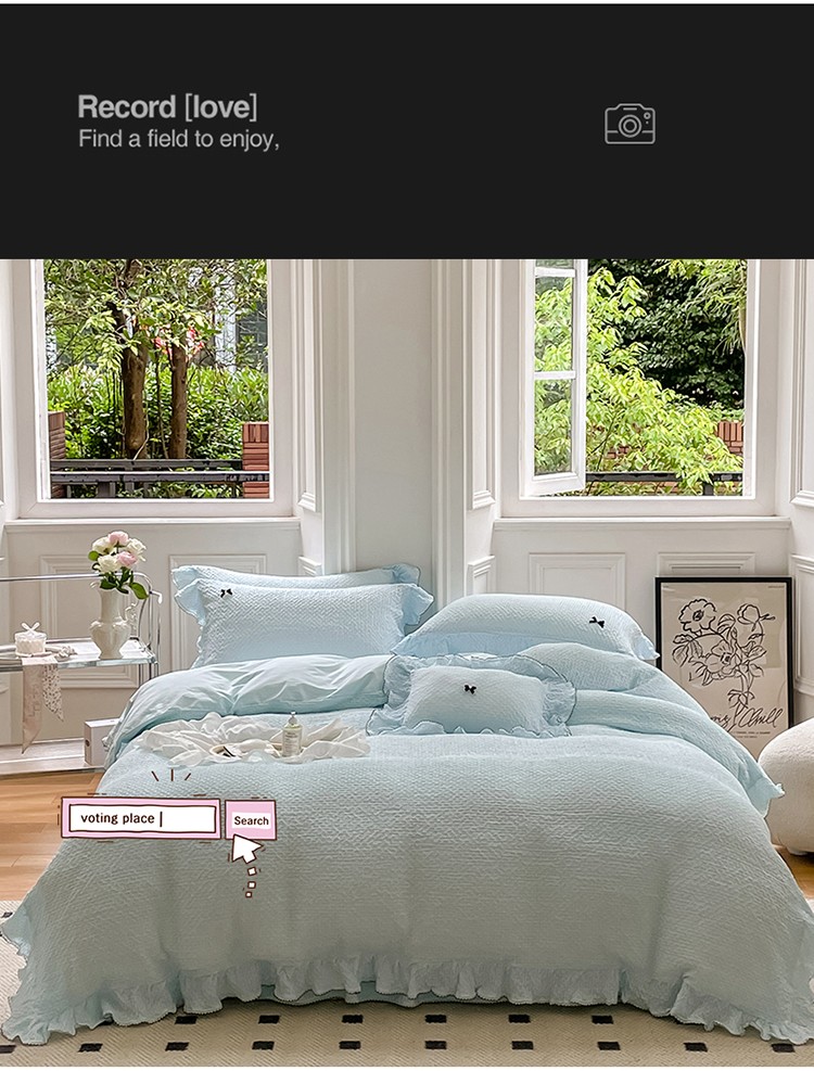 (总)婳庭家居 2025新款双层纱褶皱花边款四件套,春野来信,繁梦,玫瑰故事,清秋,云上,紫萱