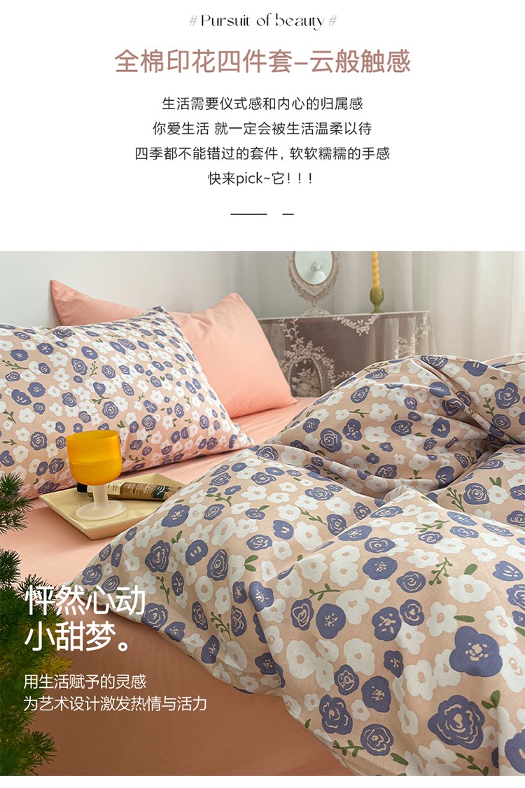 雅居纺 2022新款全棉13070混搭碎花四件套 温婉