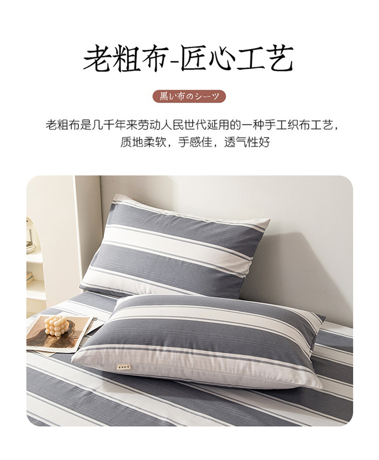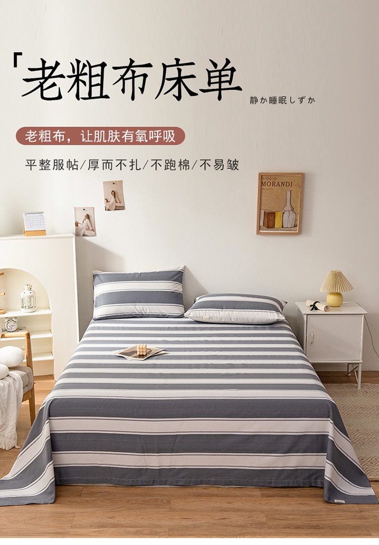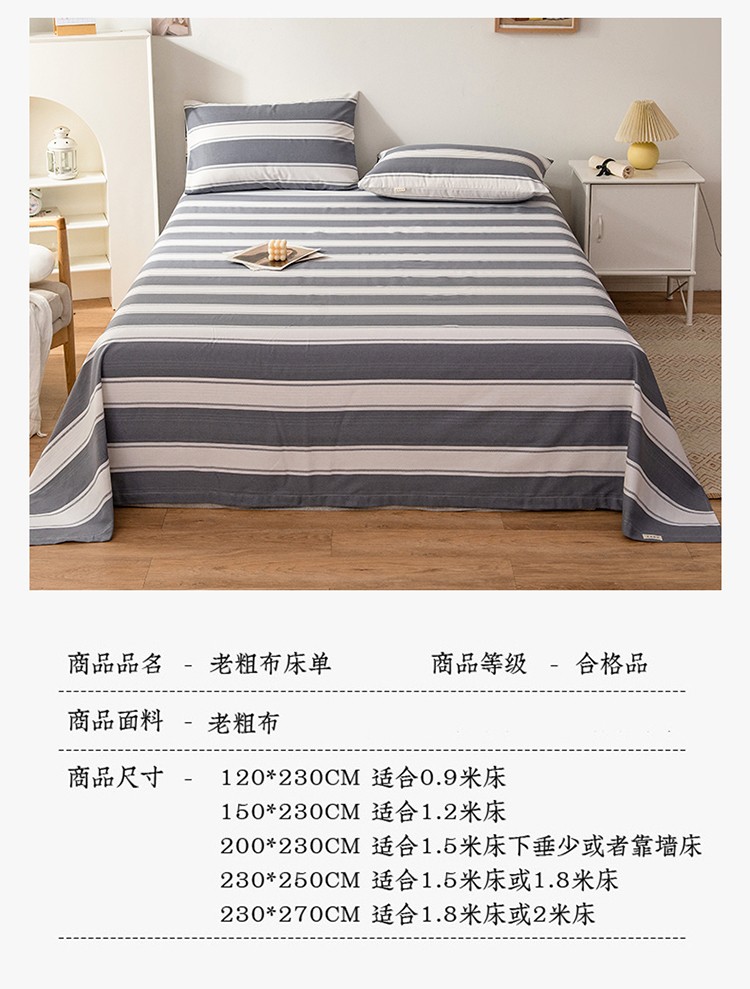 商品名称:芃成 2022新款全棉老粗布床单款灰条