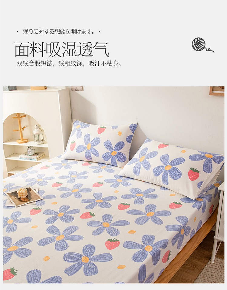 • 91家纺网 家纺一手货源 找家纺 芃成 2022新款全棉老粗布床笠款蓝色甜心