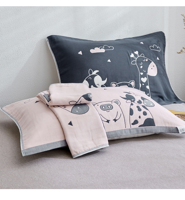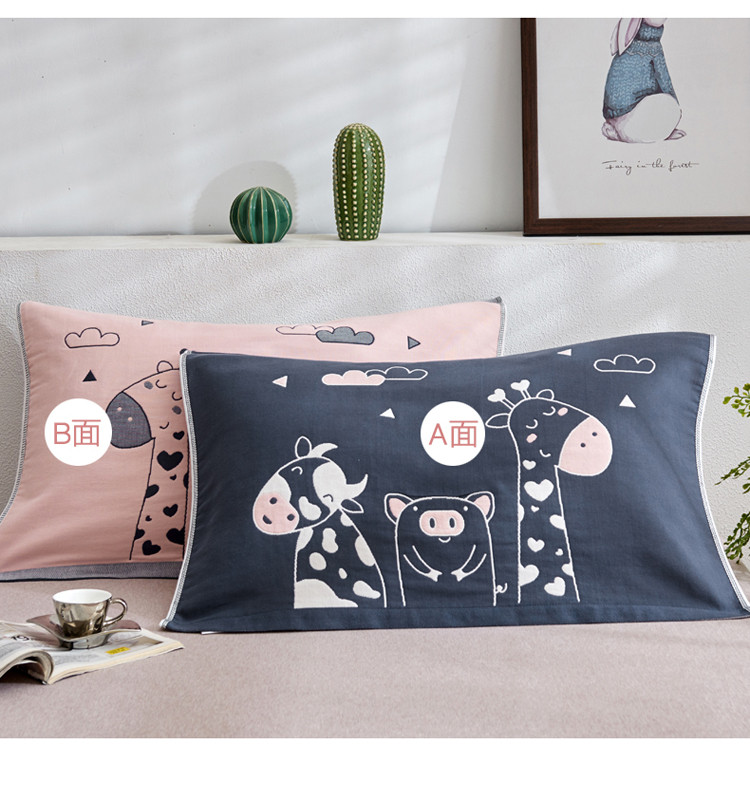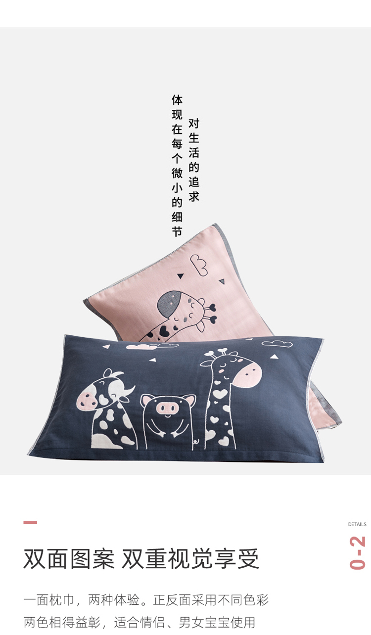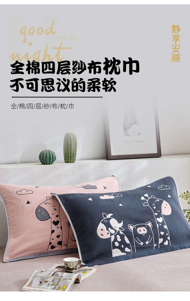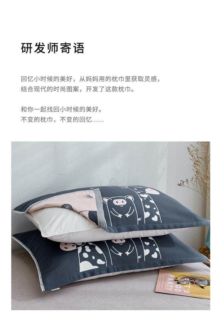• 91家纺网 家纺一手货源 找家纺 朴尔 2022新款全棉四层纱布大版花独版枕巾(一对) 萌宠三兄弟(50*80)