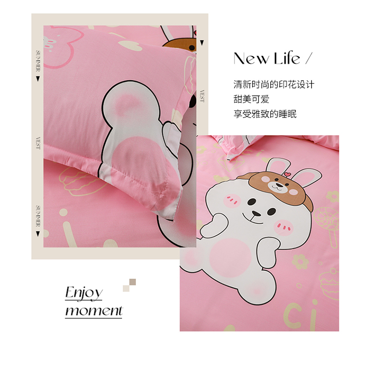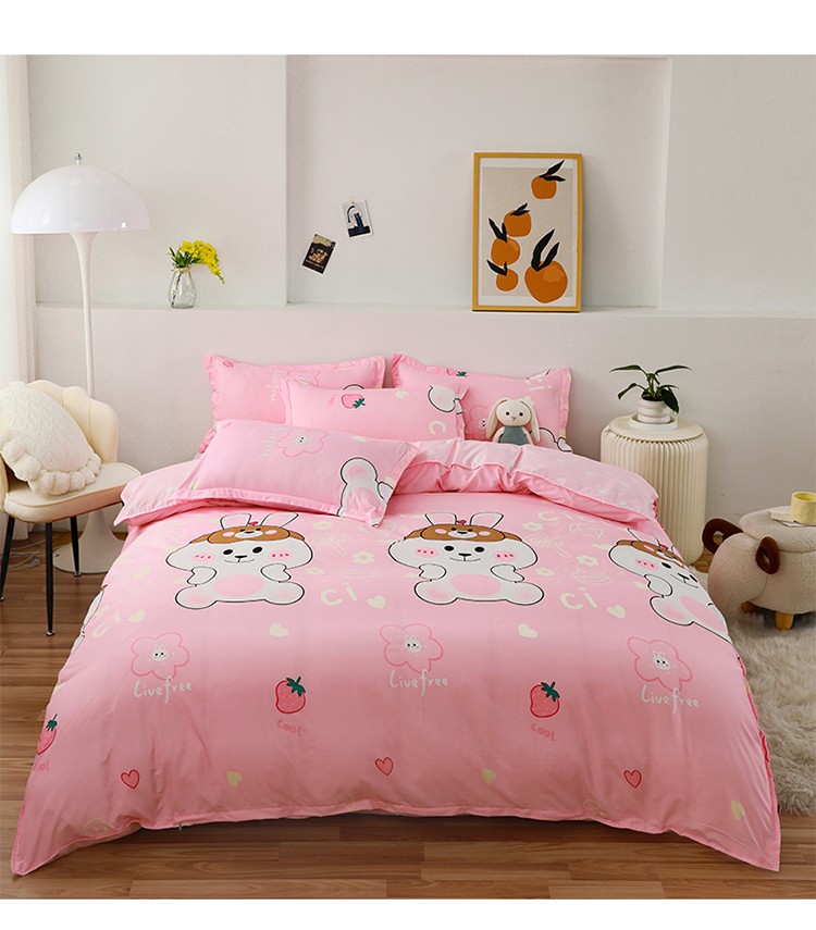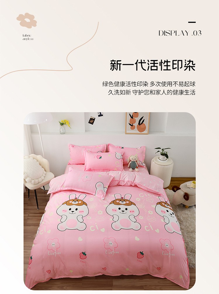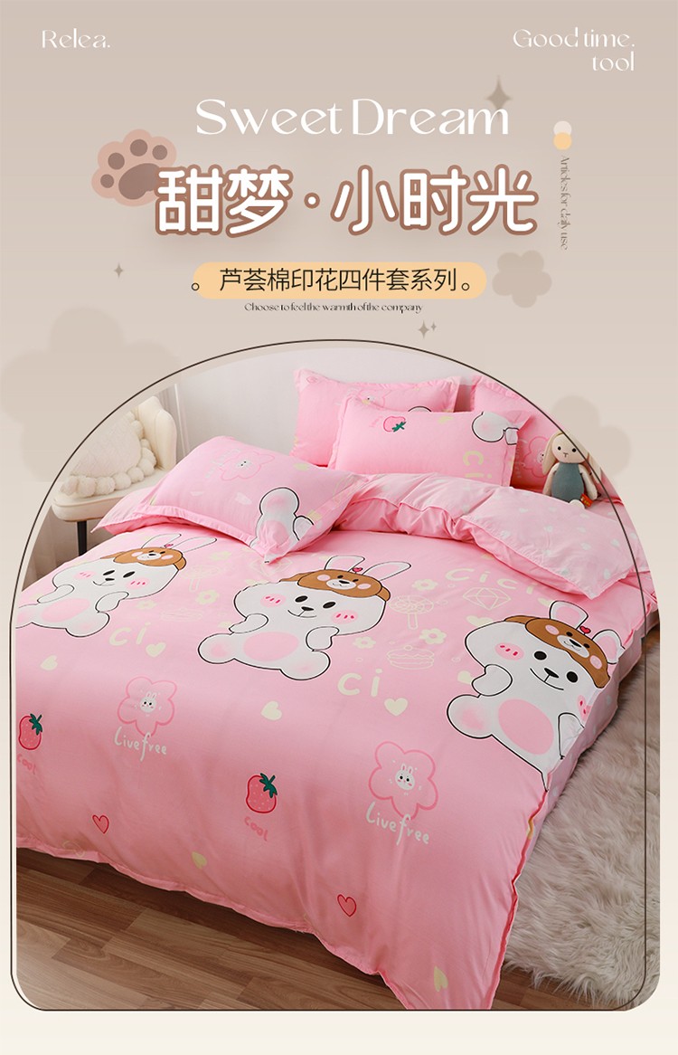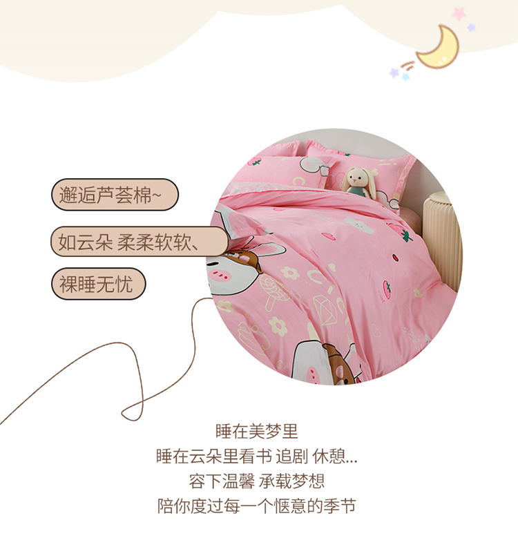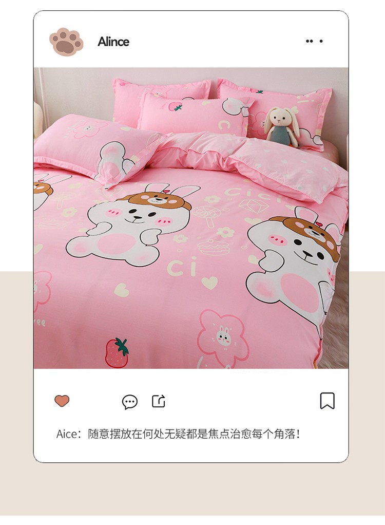 妖妖家纺 2023新款芦荟棉AB双版印花四件套 大白兔