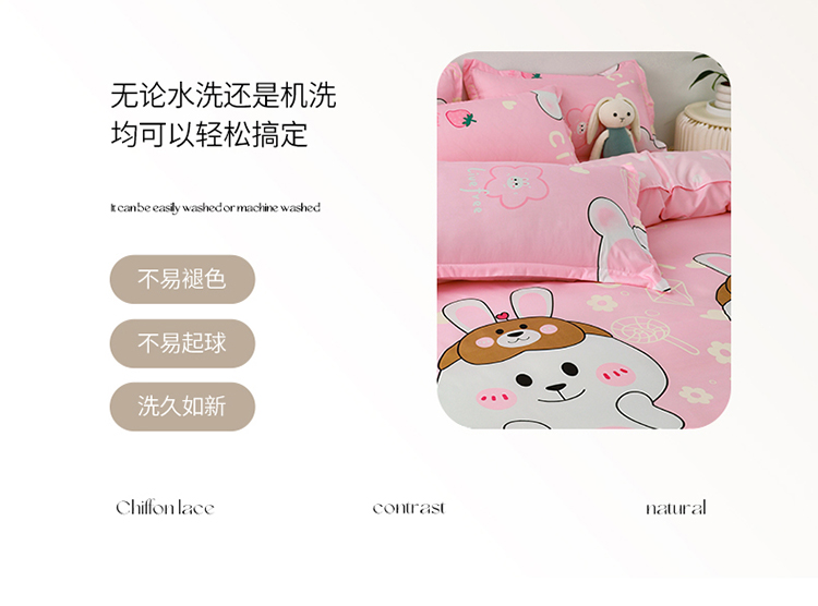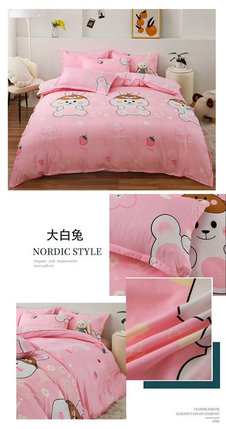 商品名称:妖妖家纺 2023新款芦荟棉AB双版印花四件套 大白兔
