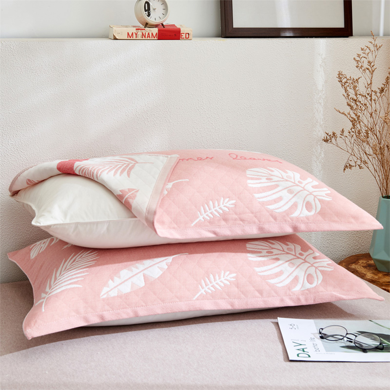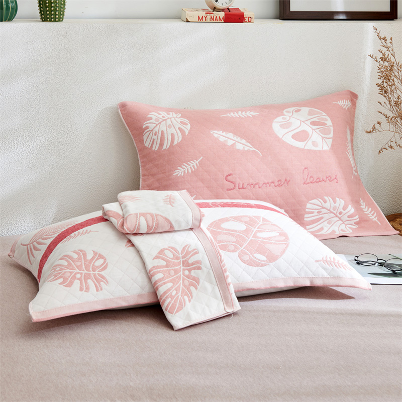 朴尔 2022新款三层纱布枕巾(一对) 夏日芭蕉-粉(52*78)
