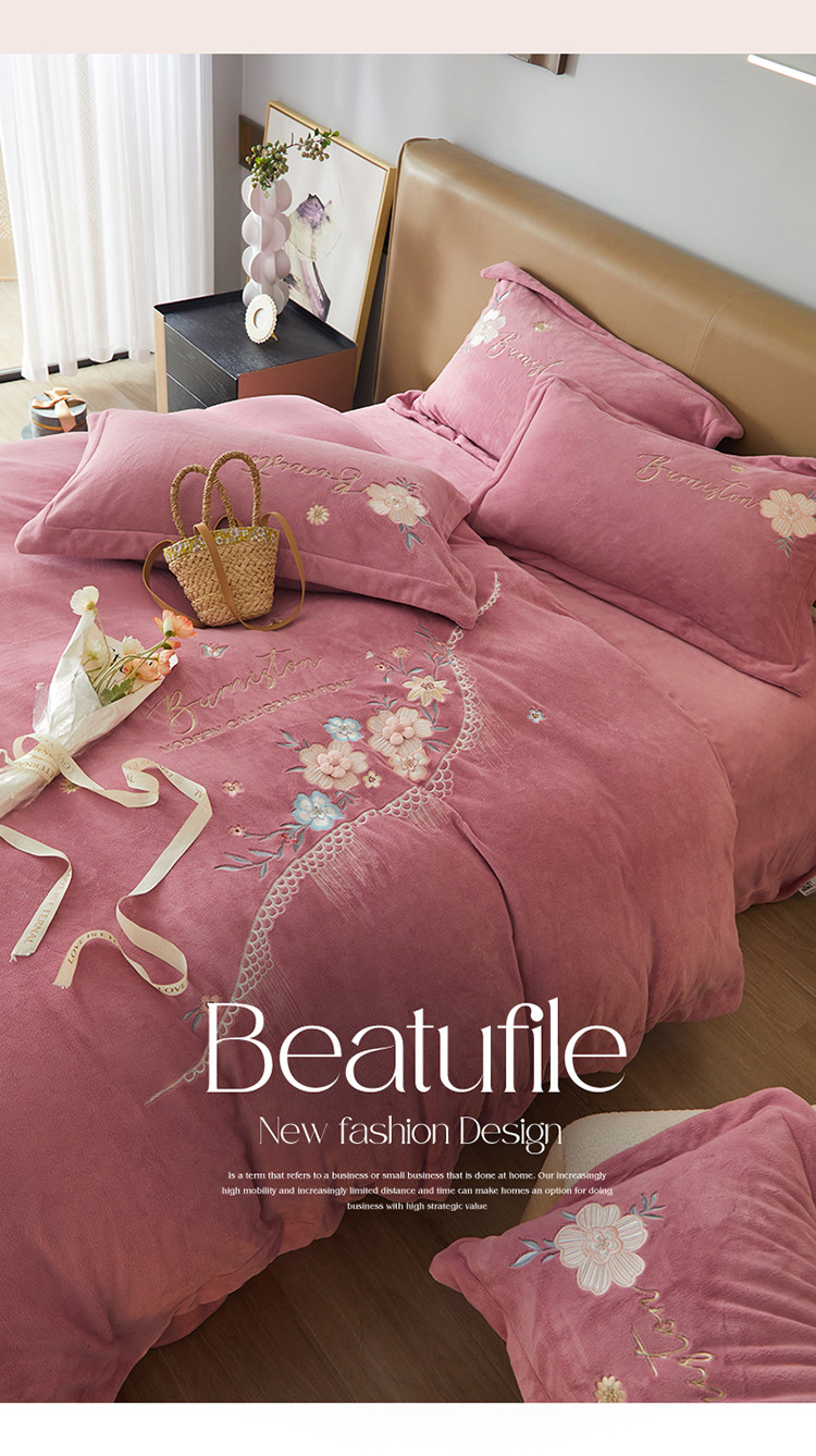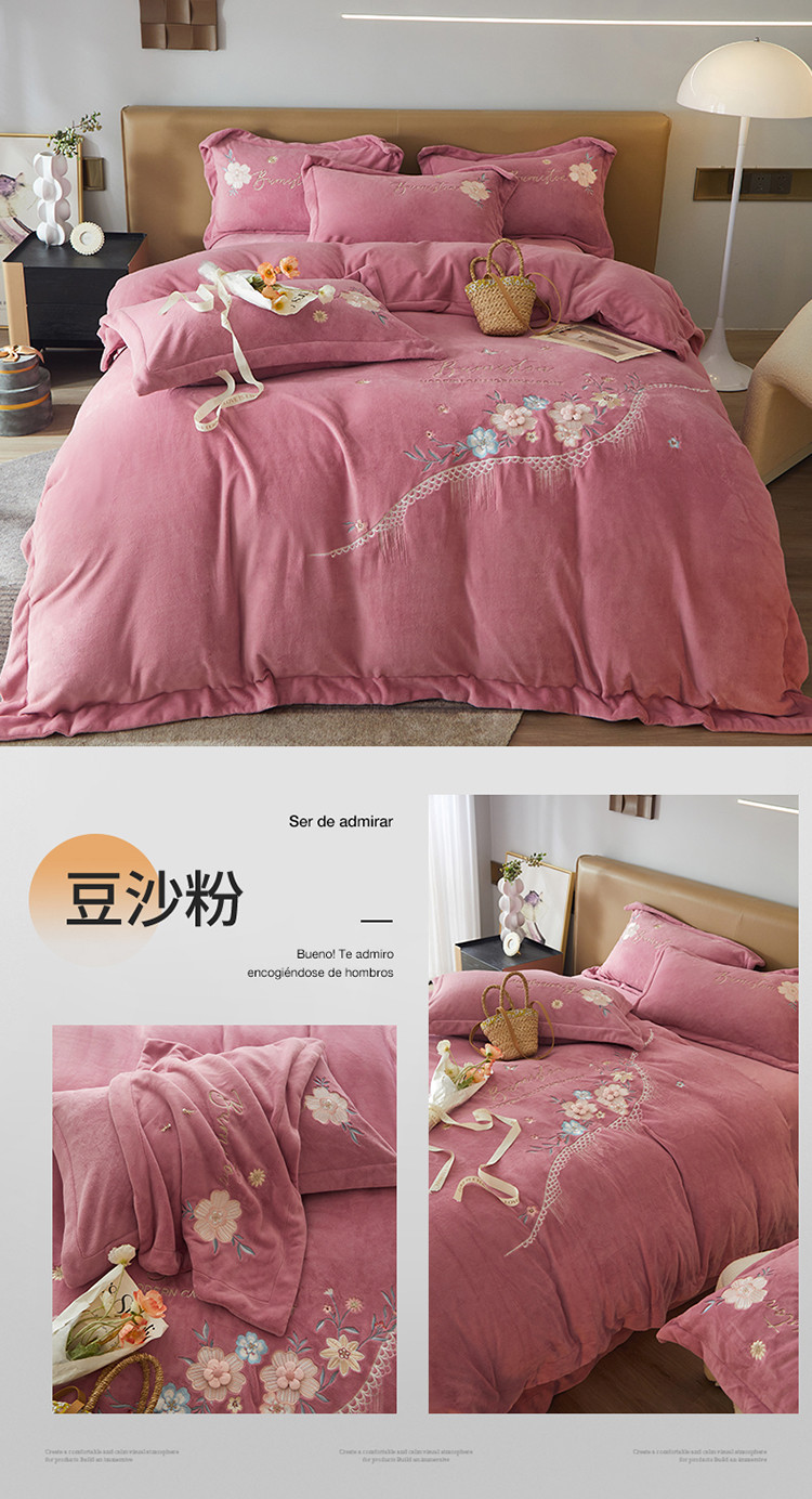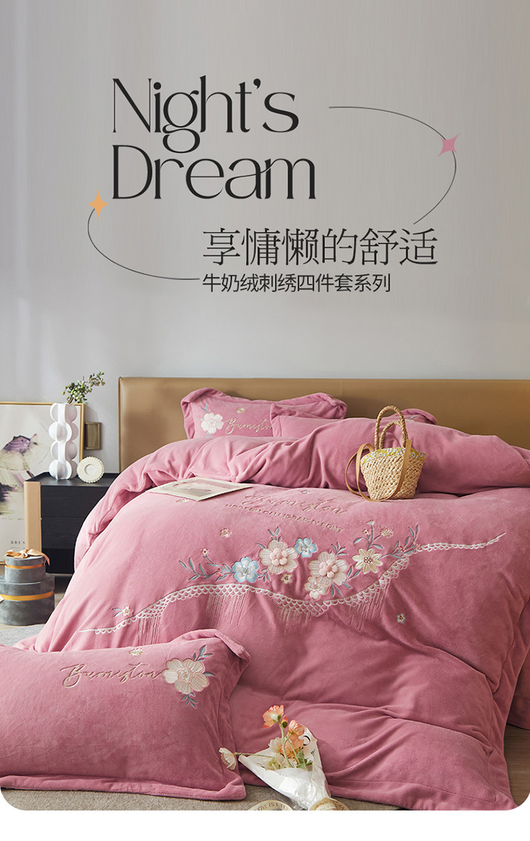 (总)名品优仓 2025新款220克牛奶绒绣花四件套-珊瑚,珊瑚-宝石蓝,珊瑚-粉色,珊瑚-姜黄,珊瑚-米杏,珊瑚-沫粉,珊瑚-杏粉