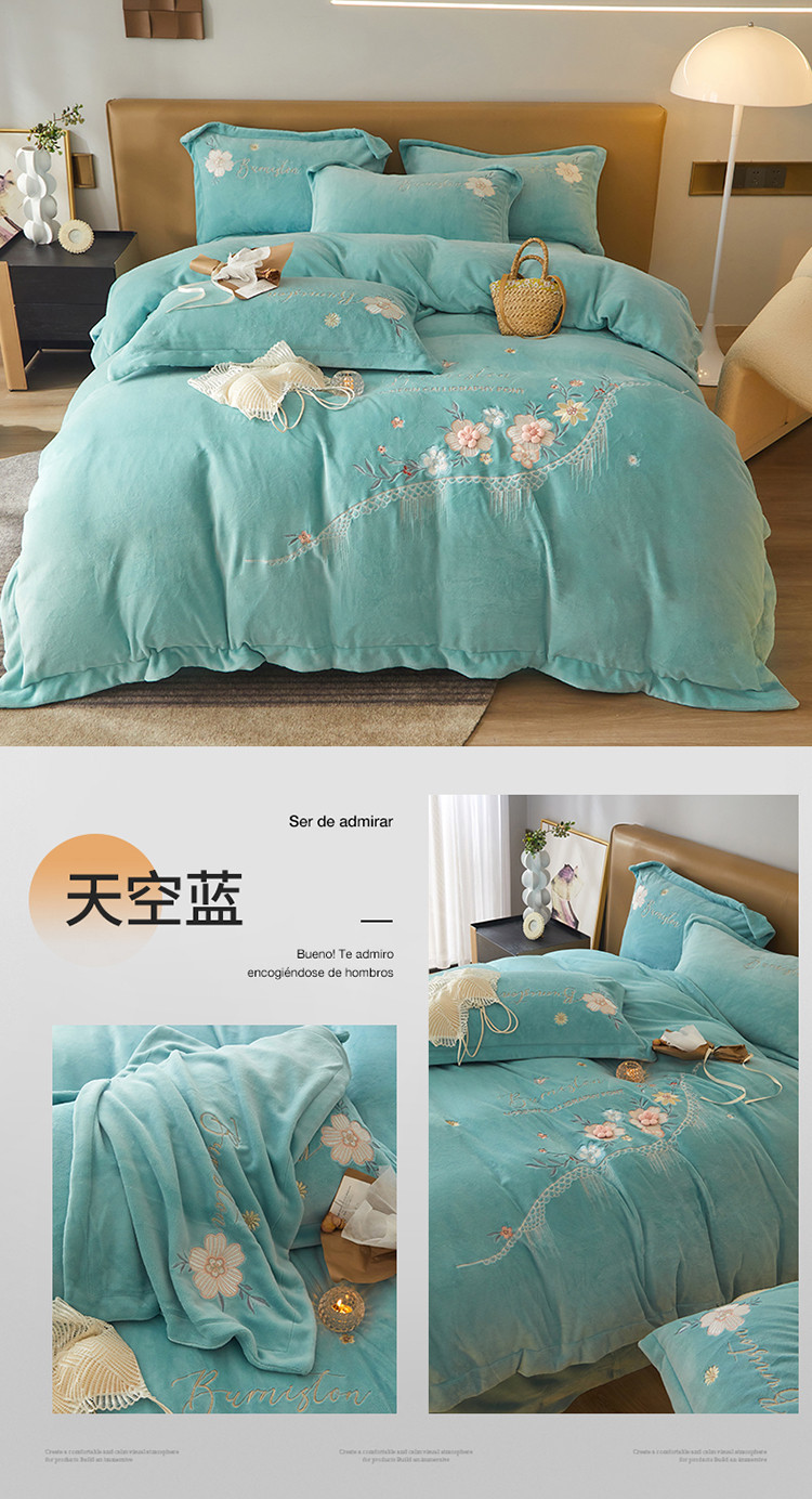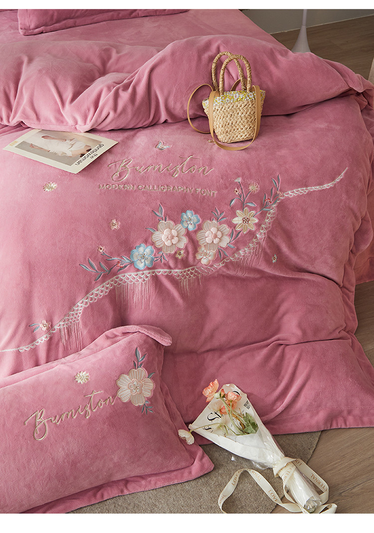 (总)名品优仓 新款230g牛奶绒刺绣四件套-贝拉花园