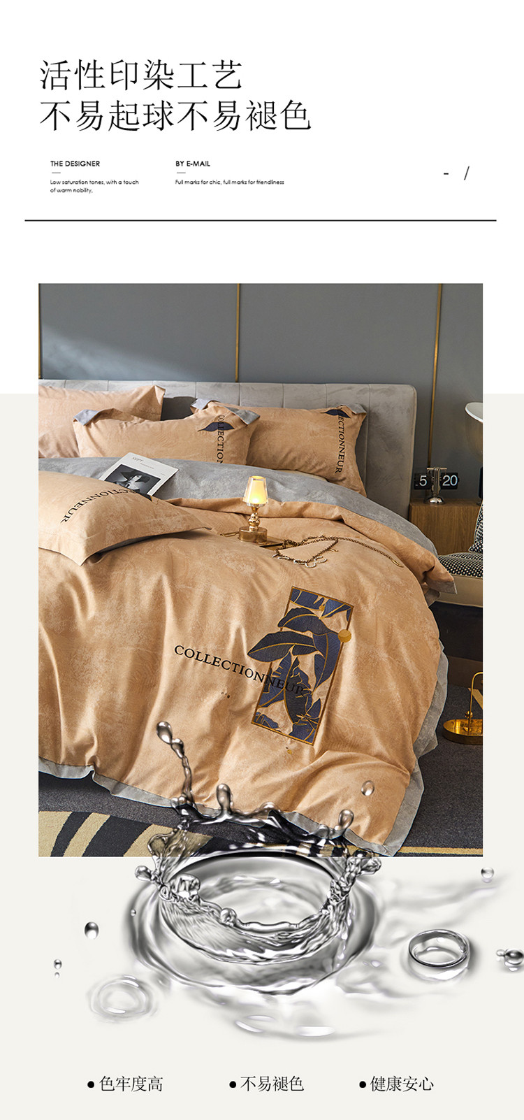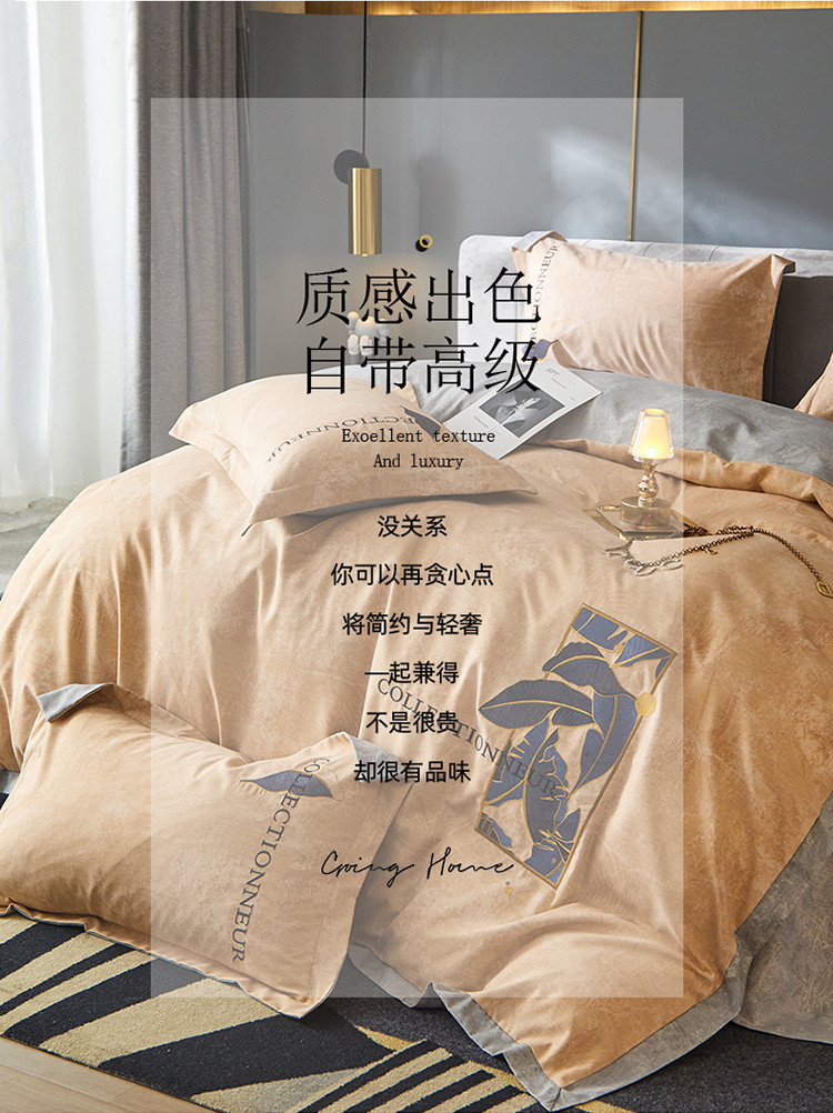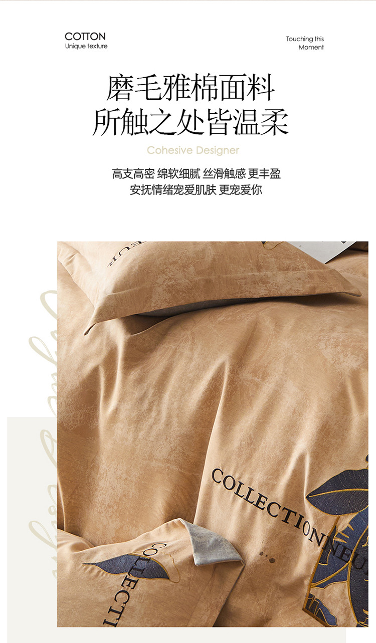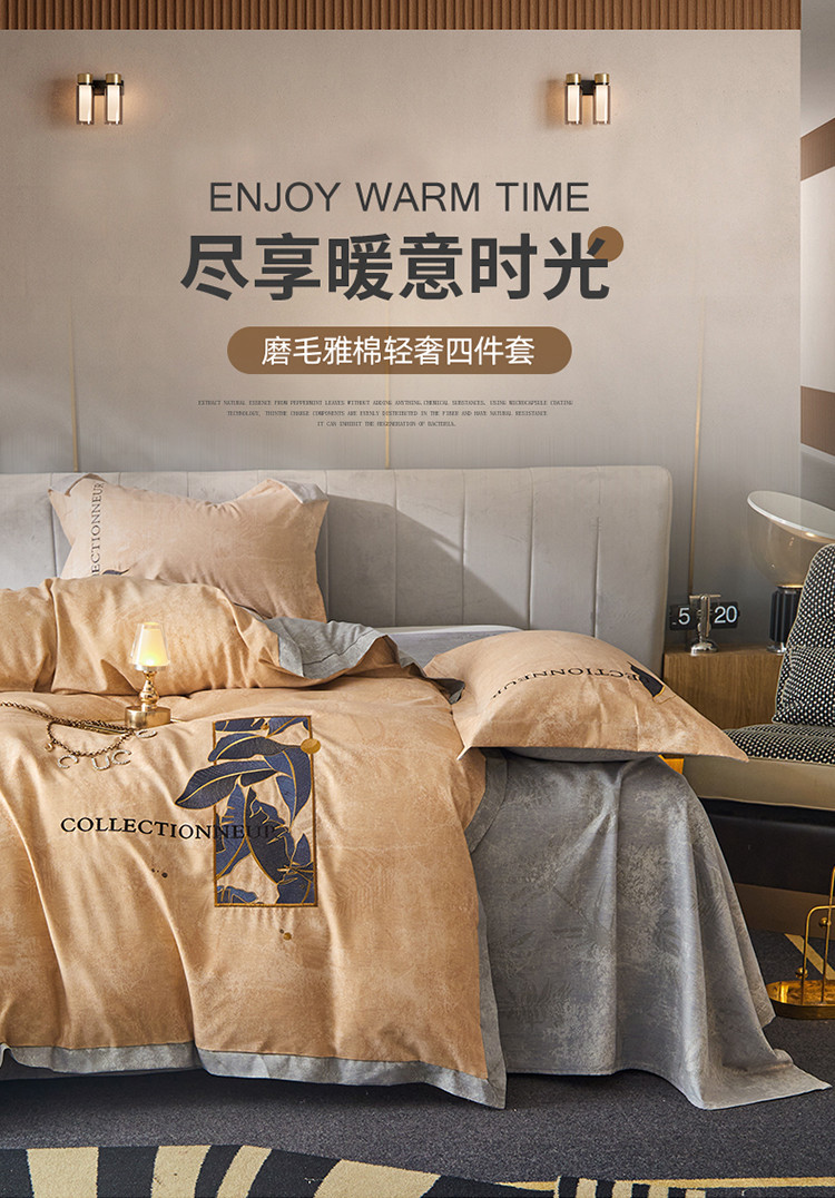 凡客家居 2022新款阳绒磨毛刺绣博拉图系列四件套 博拉图-卡其