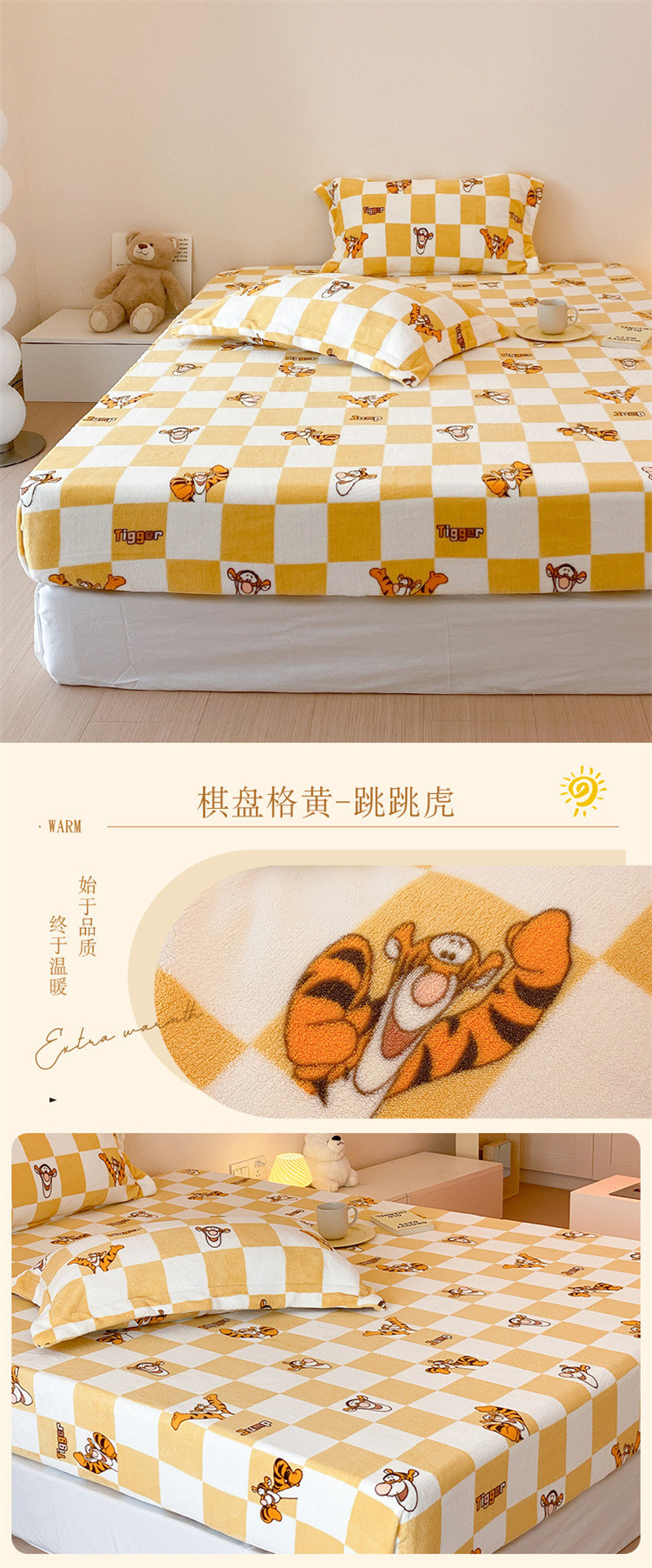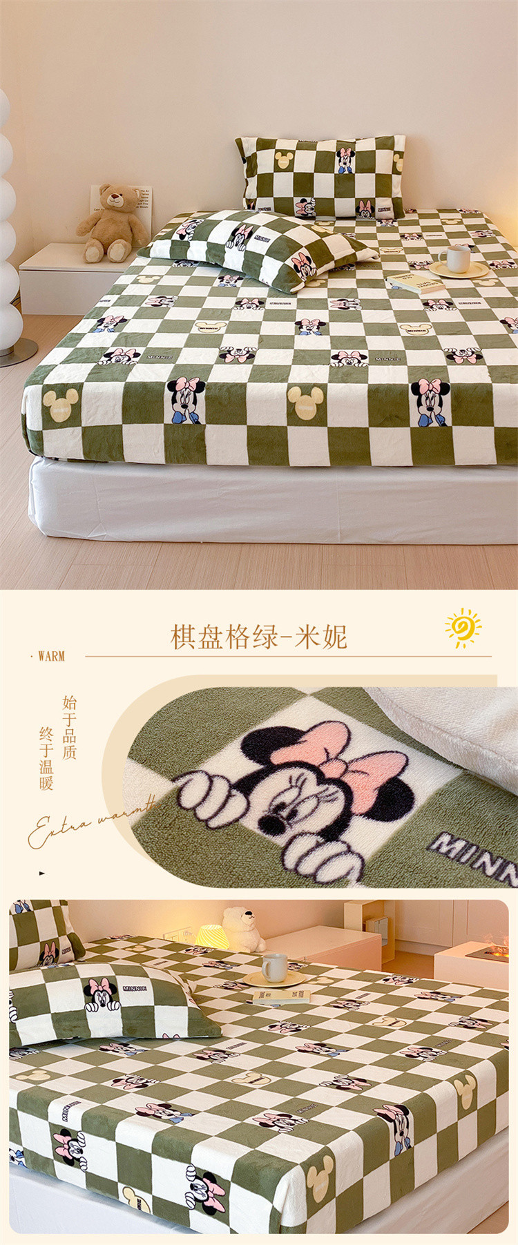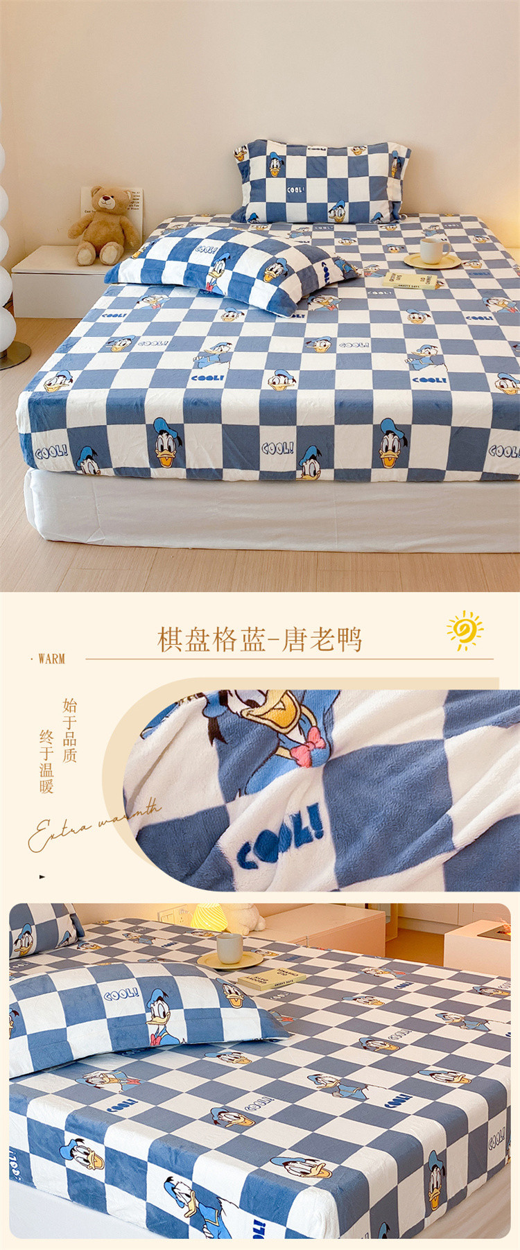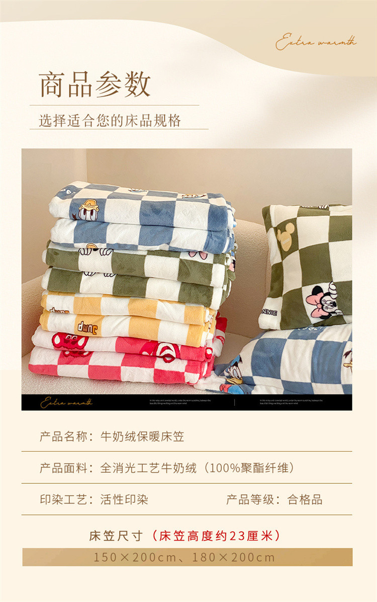 商品名称:总时光里 230g正宗全消光印花牛奶绒迪士尼棋盘格系列单床笠