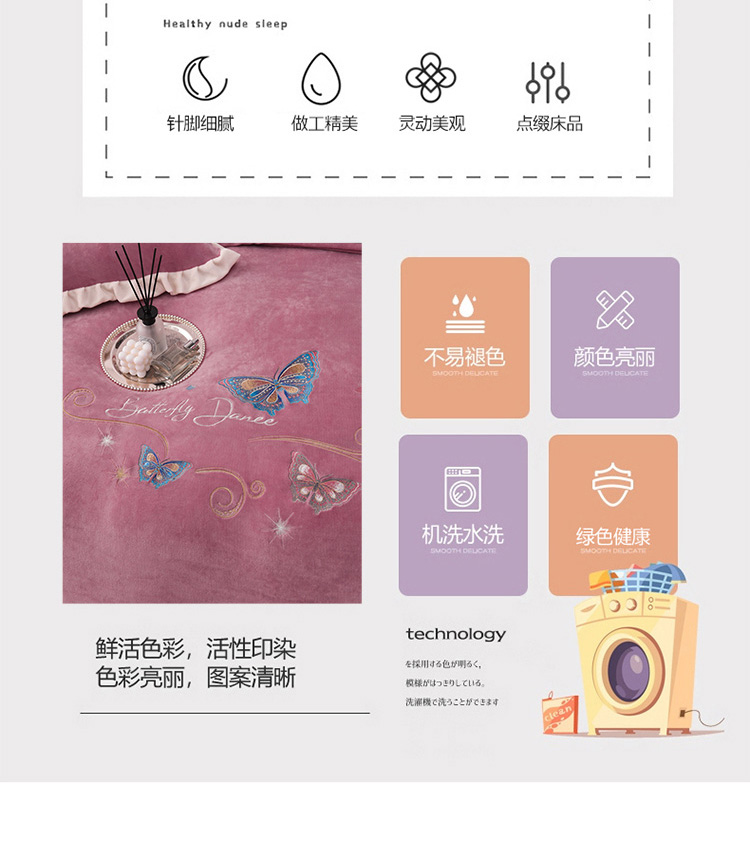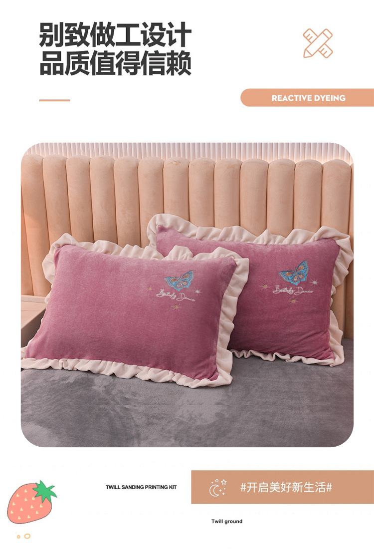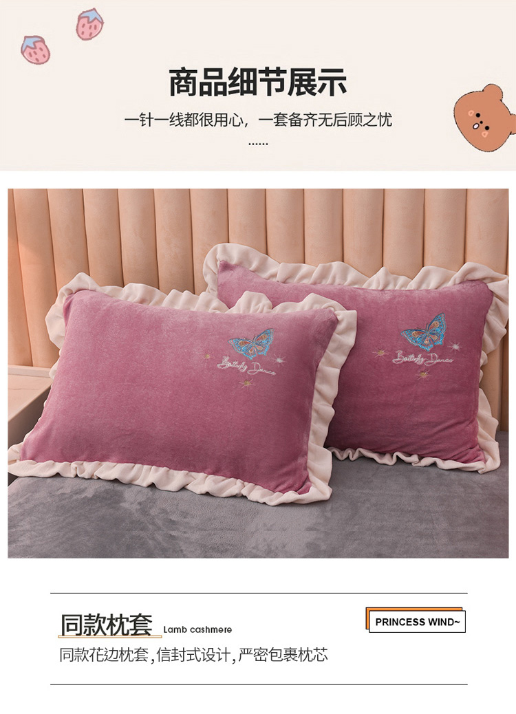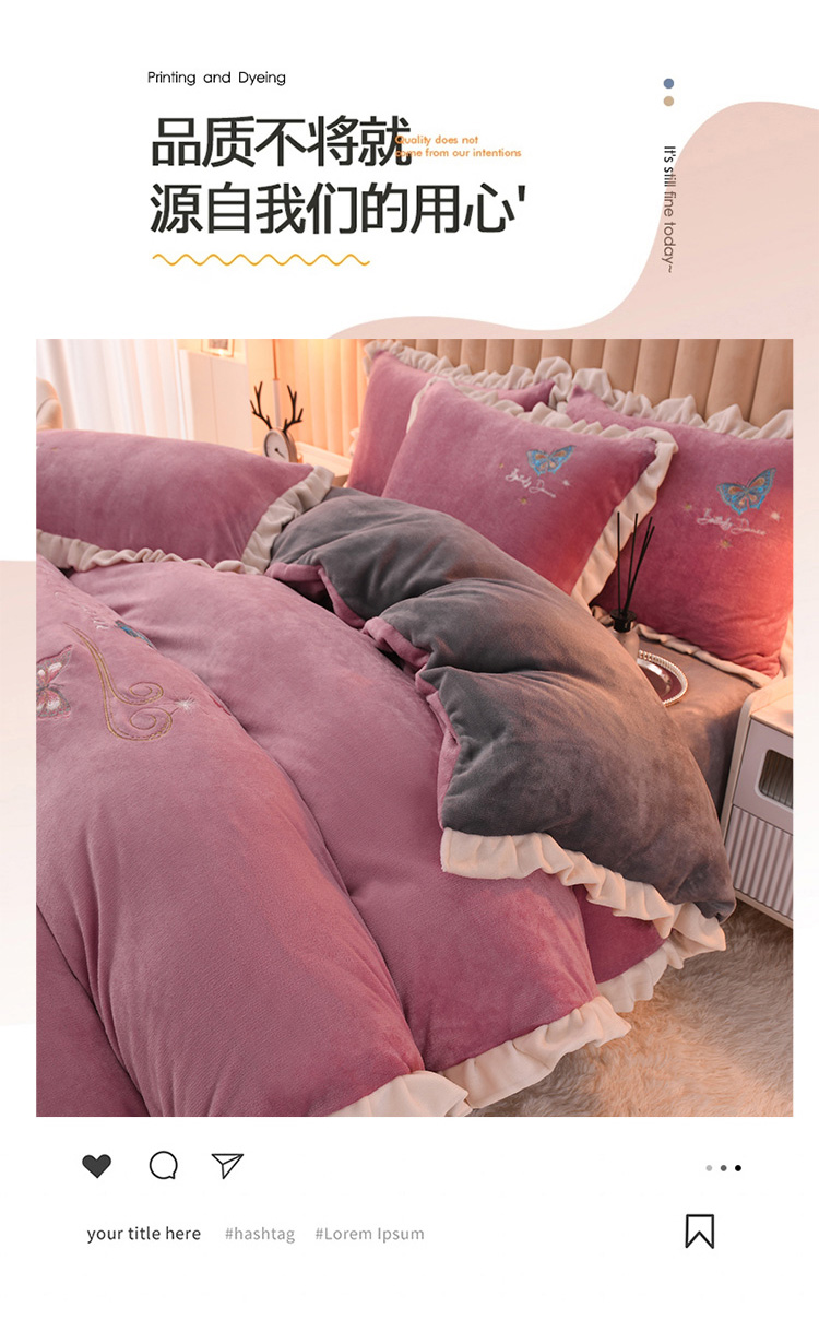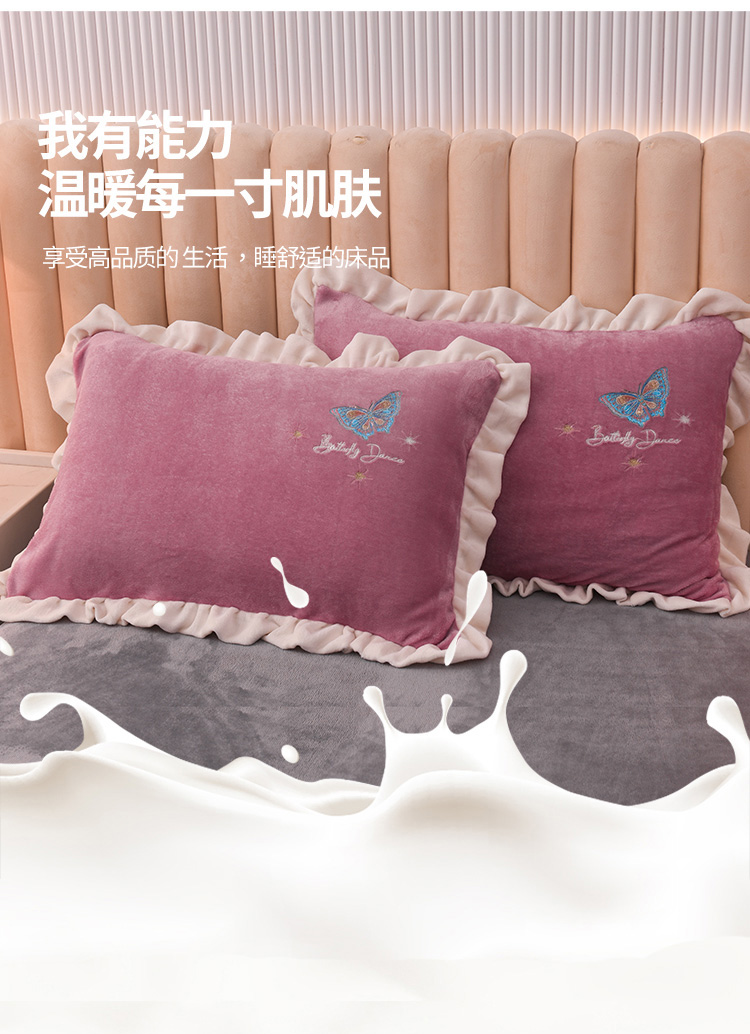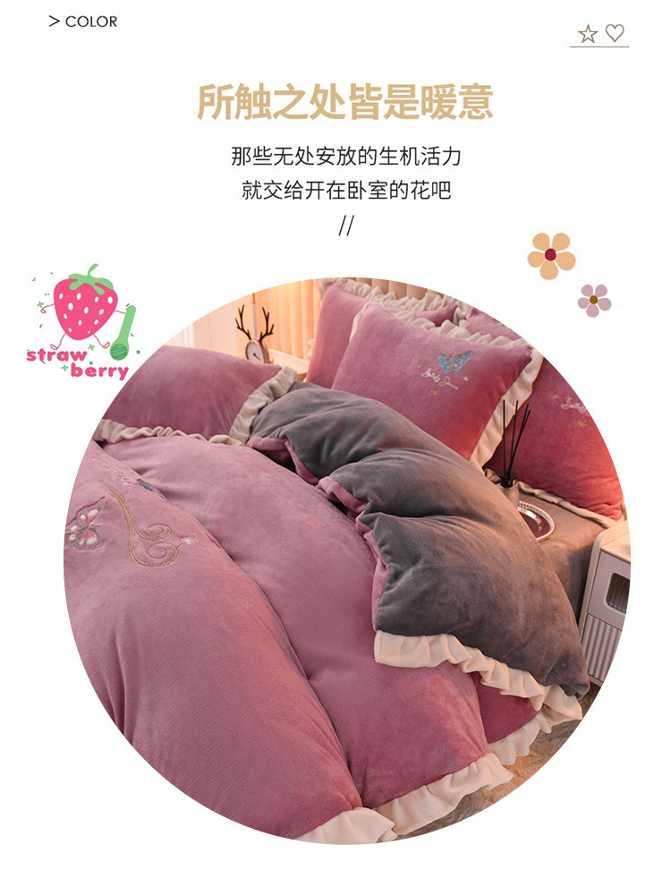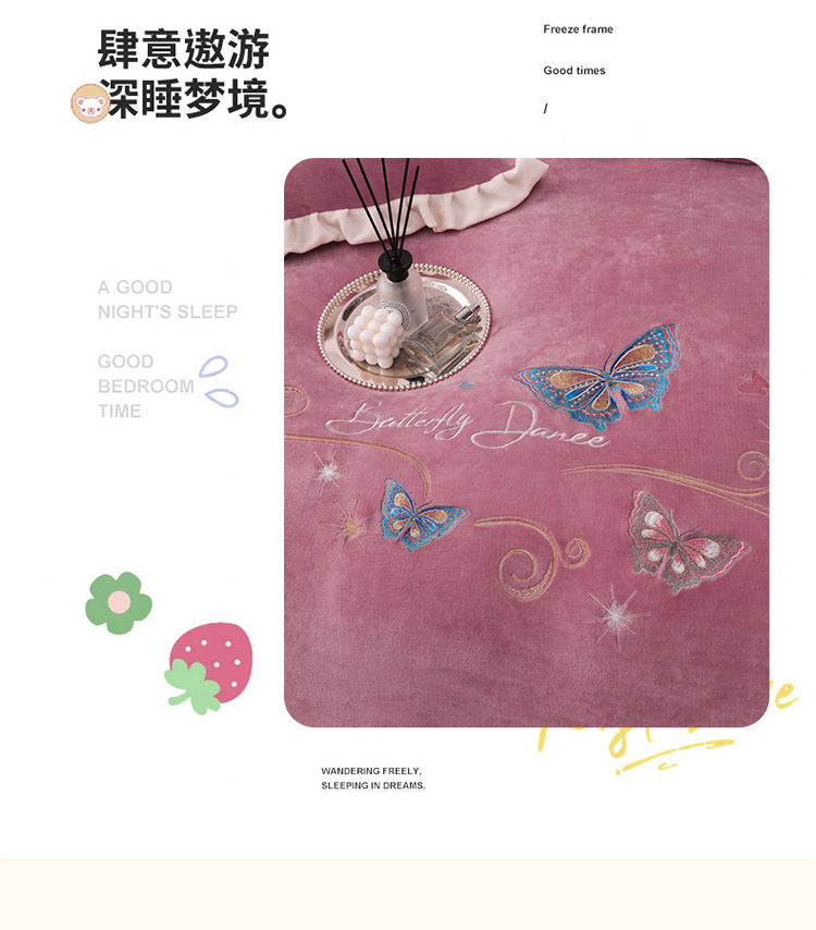 商品名称:芃成 2022新款加厚保暖牛奶绒绣花四件套 蝶舞 豆沙