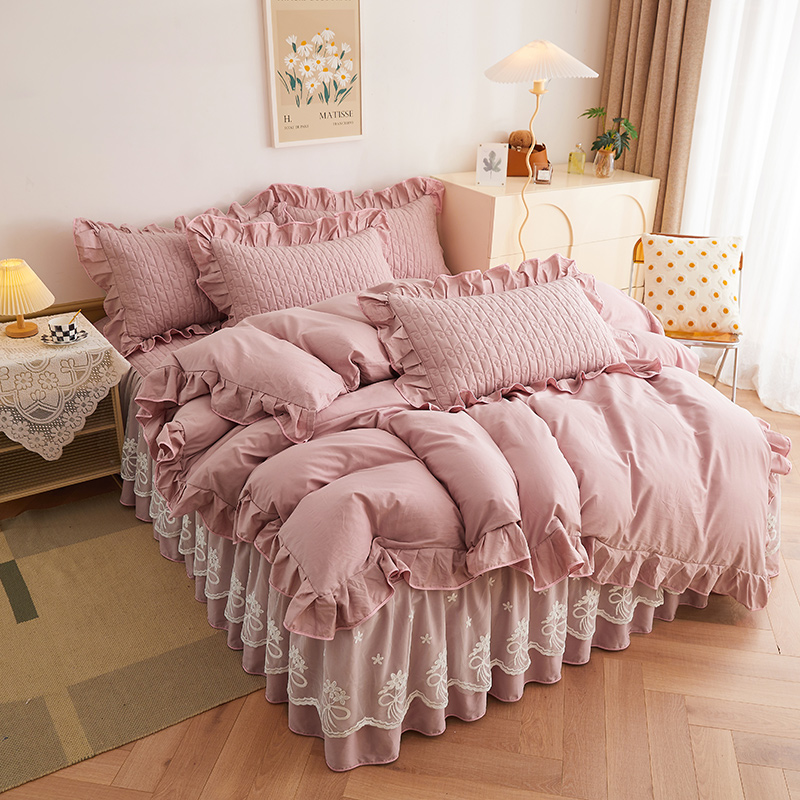 当前位置: 91家纺网 > 商品网购 > 床品套件 > 四件套 > 全棉普通四件套 > 宜凡 2023新款四季款全棉夹棉床裙四件套 春禾集 莫奈粉