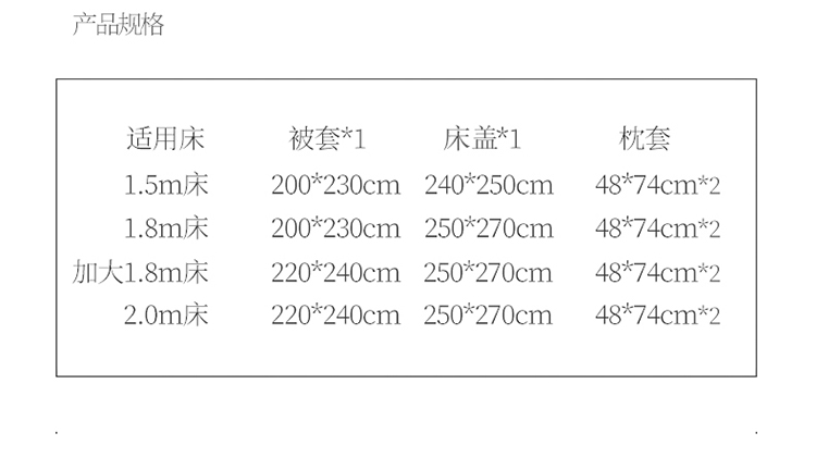 1.8米床盖款四件套 | ¥265.00 |