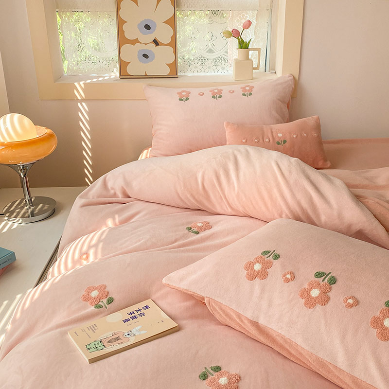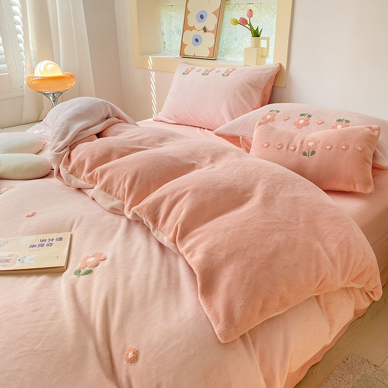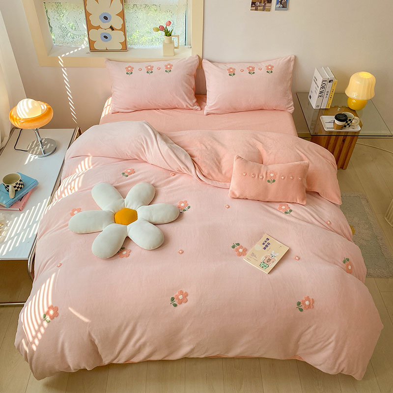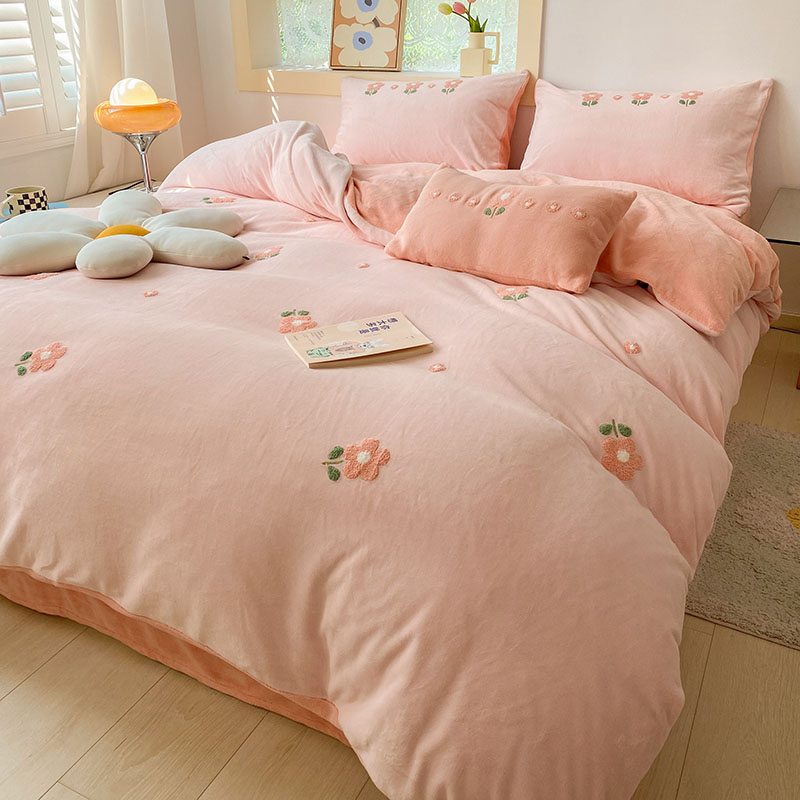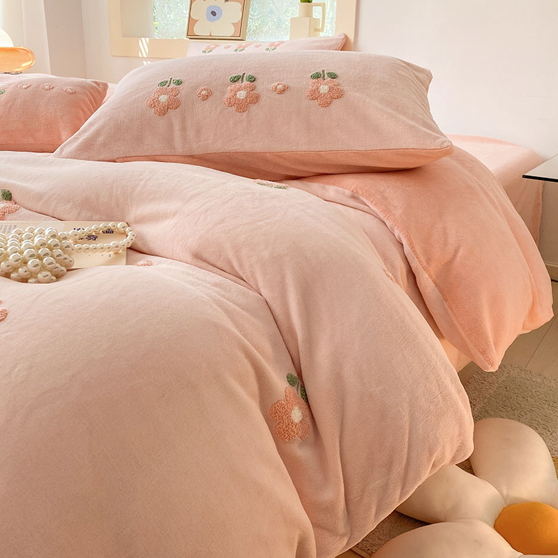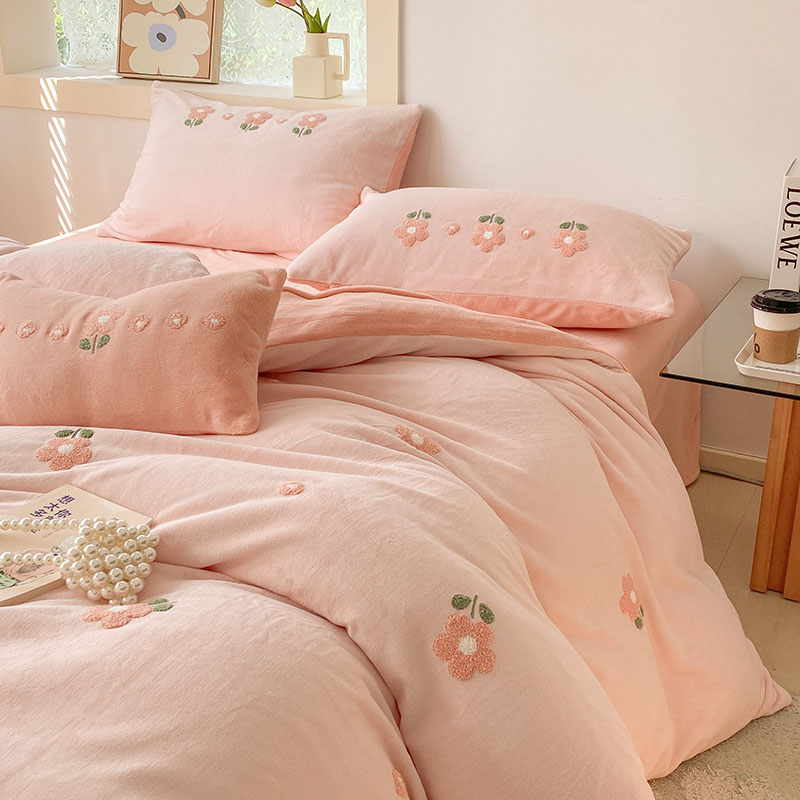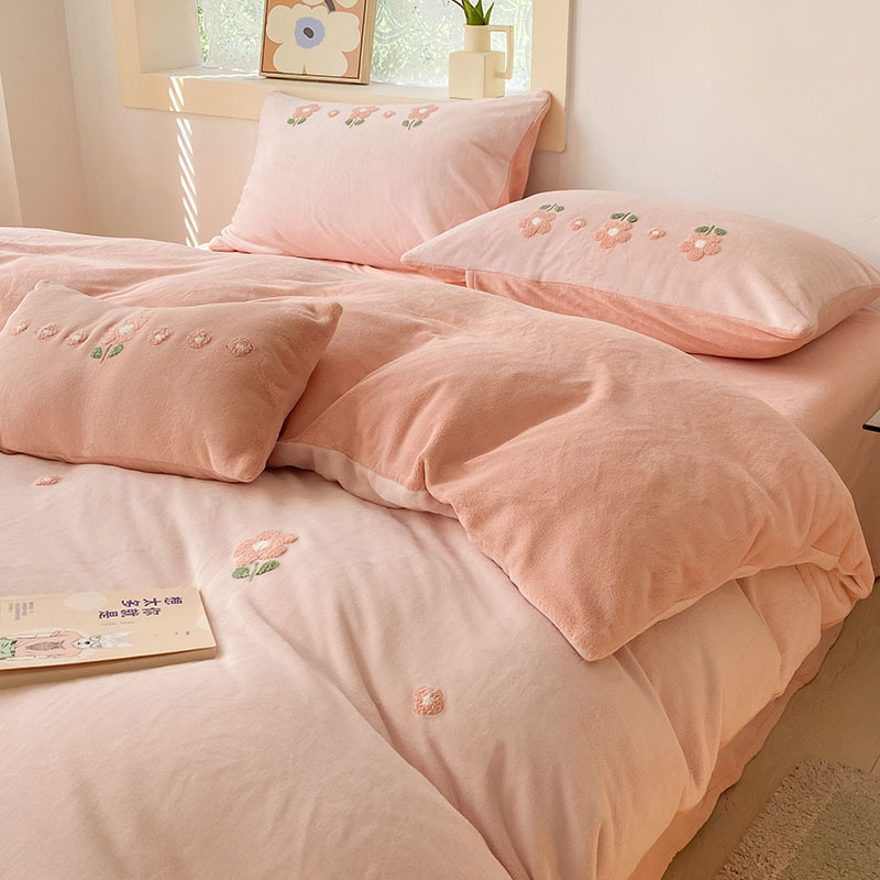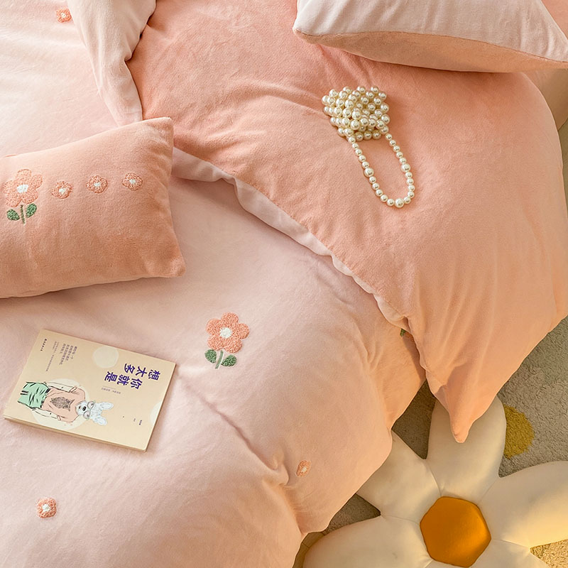 商品名称:寐居2022新款毛巾绣牛奶绒单被套 朵朵花开-粉玉