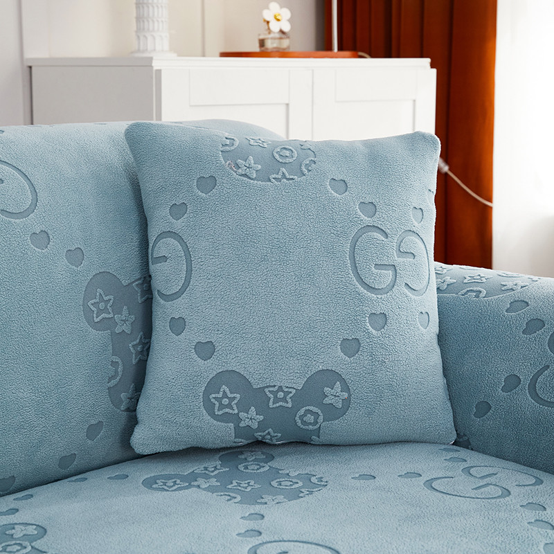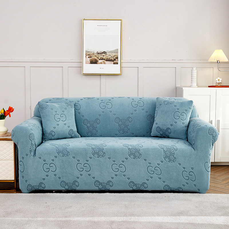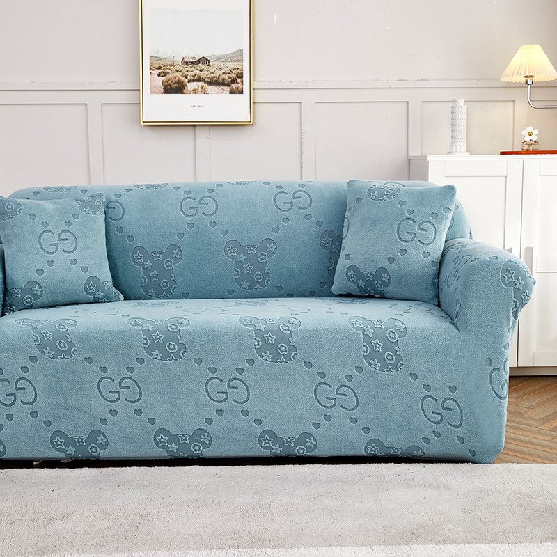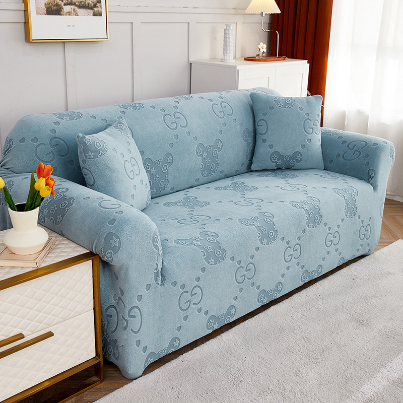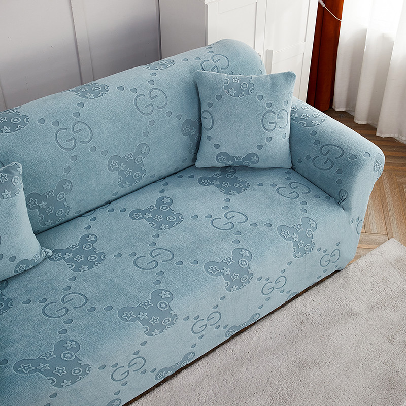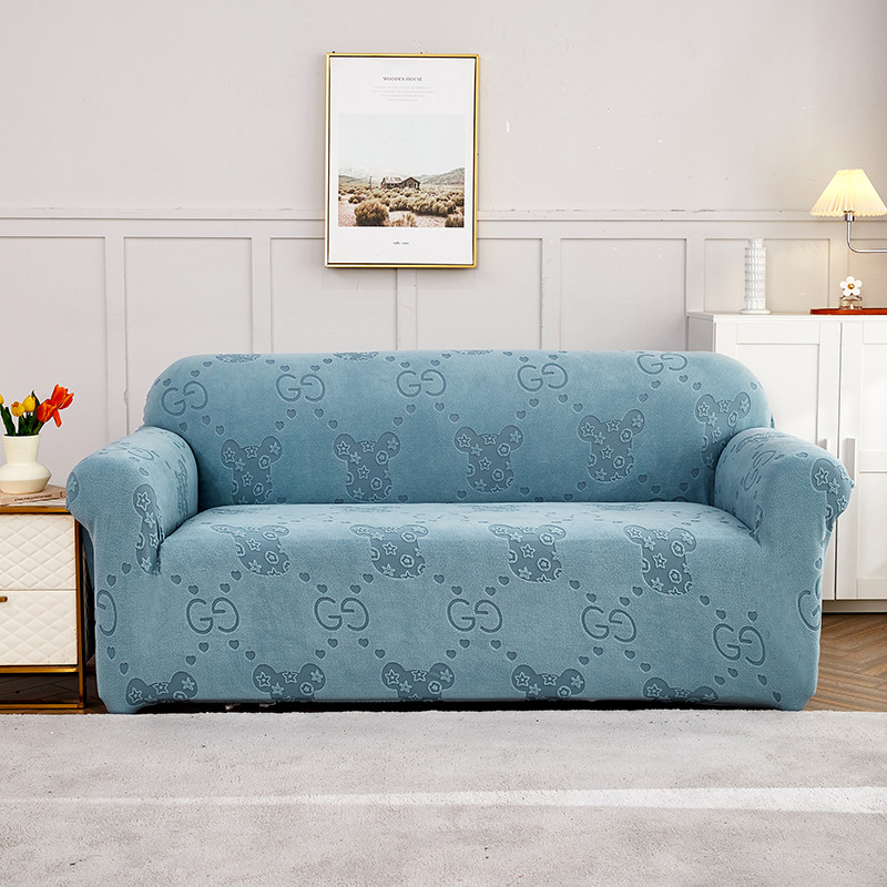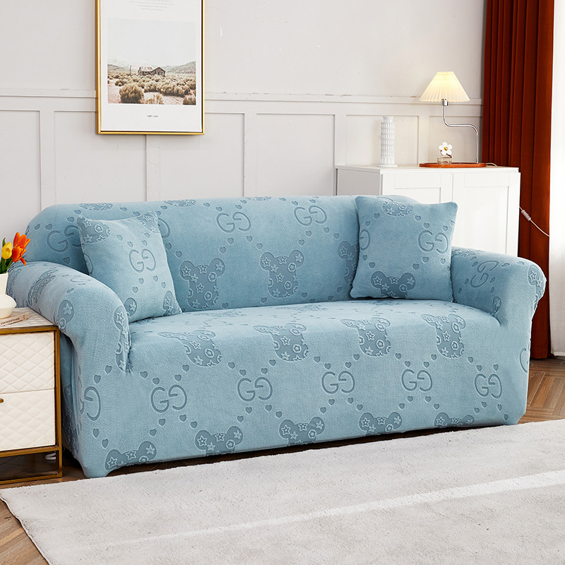 逐日沙发套 2023新款提花绒直排沙发套 酷熊-雾霾蓝