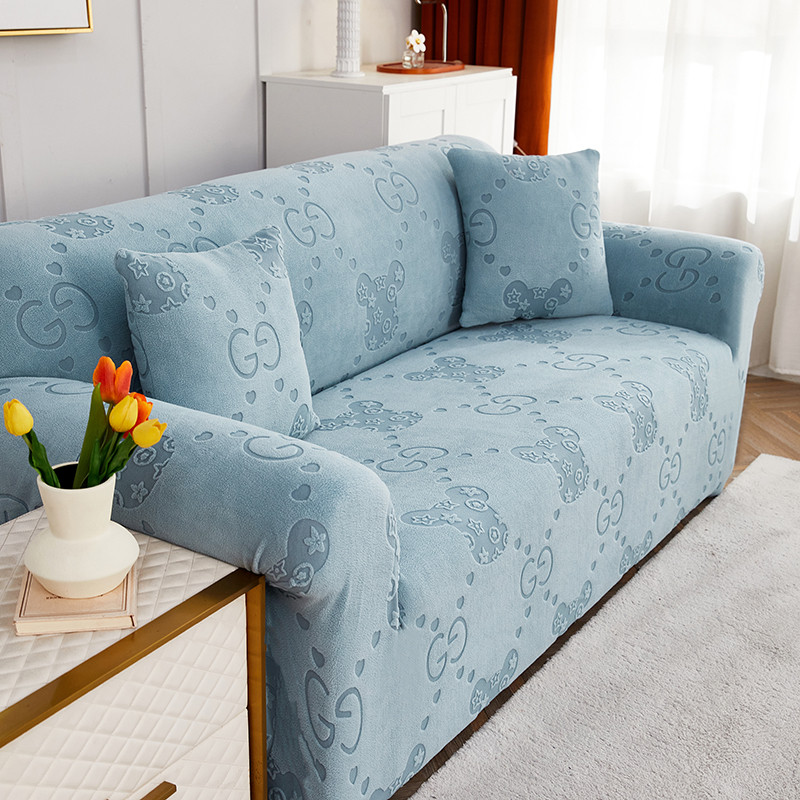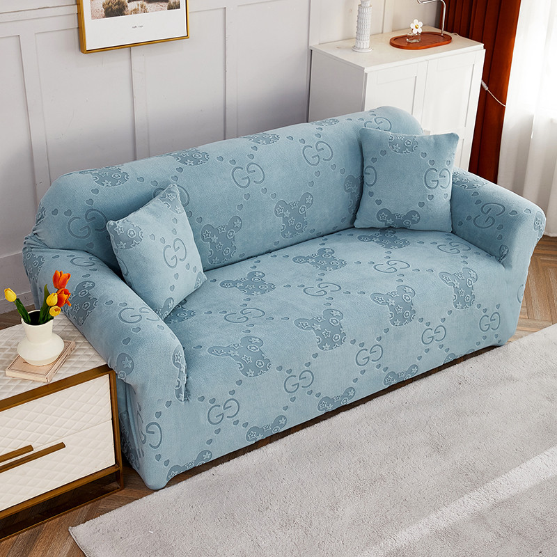 商品名称:逐日沙发套 2023新款提花绒直排沙发套 酷熊-雾霾蓝