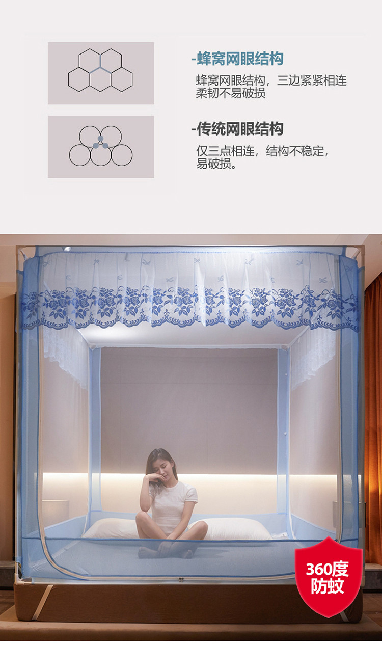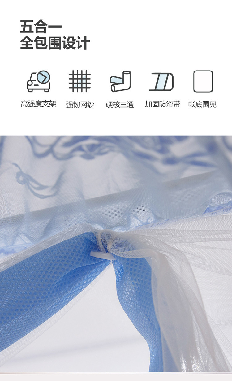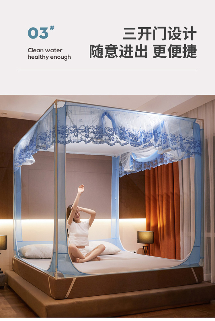 商品名称:飞轮海 2023新款大空间三开门方顶蚊帐-Z78 海棠-晴天蓝