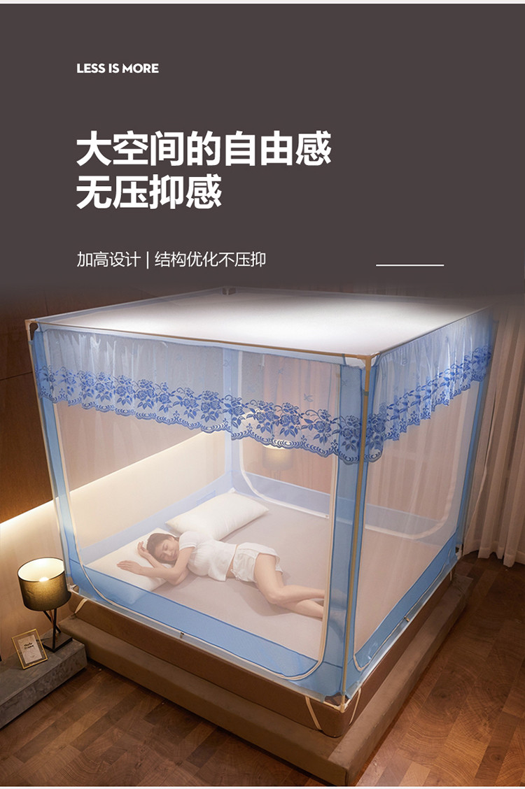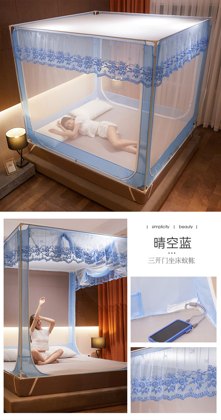 飞轮海 2023新款大空间三开门方顶蚊帐-Z78 海棠-晴天蓝