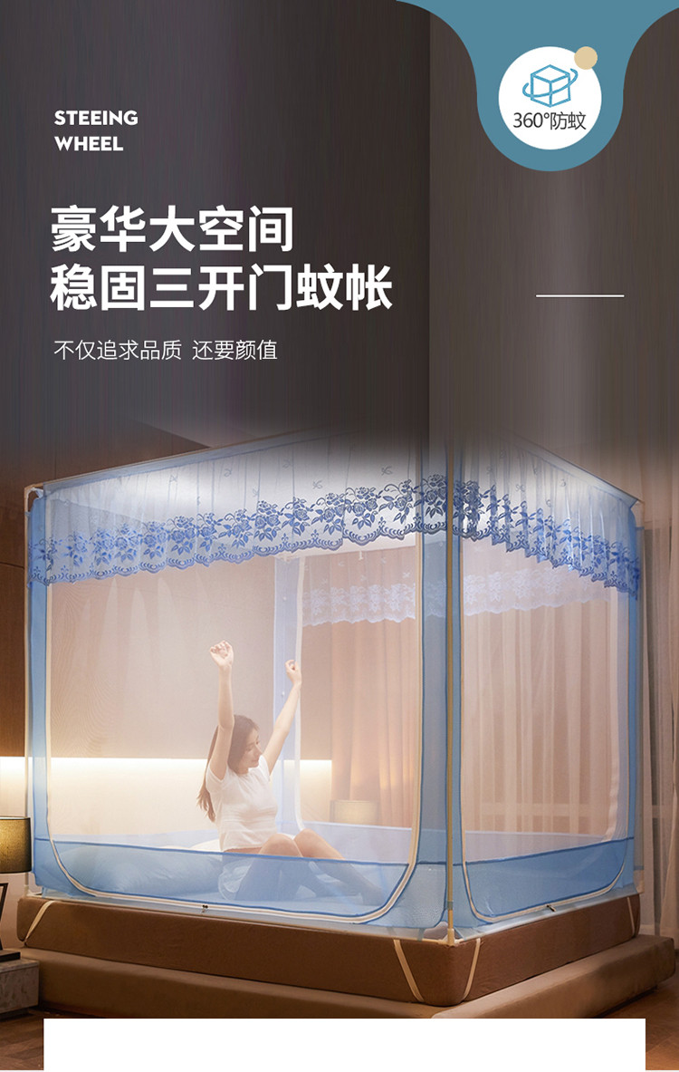 (总)飞轮海蚊帐 2023新款三开门落地遮光蚊帐-L-93,高级灰,芥末绿,奶油黄,香槟