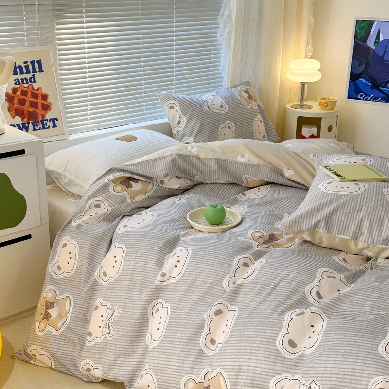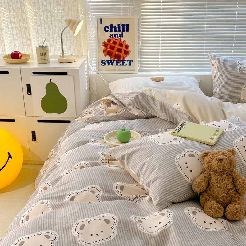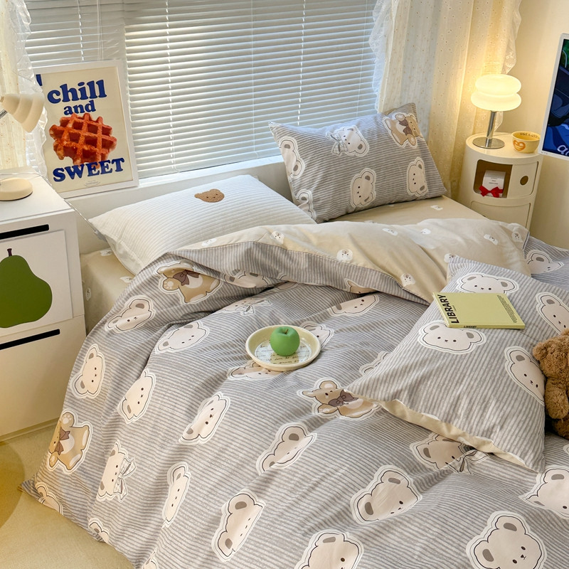 (总)昔可 2023新款学生季卡通普通款四件套,彩色气球熊,彩条恐龙,憨憨熊,花蜜小兔,蘑菇兔,圈圈草莓,蔬菜小兔,郁金香小萌狗