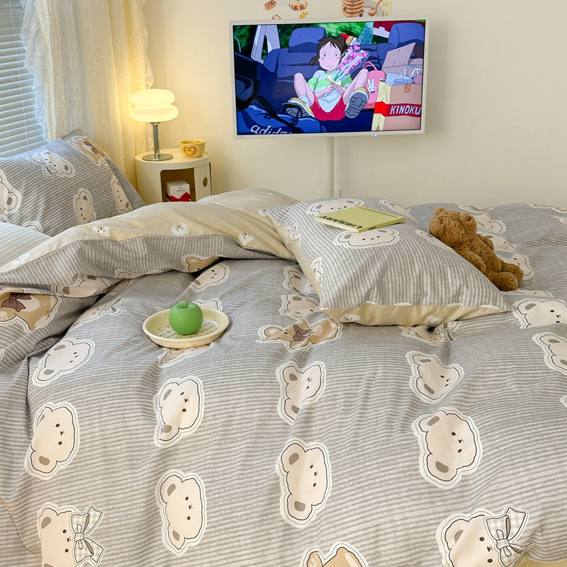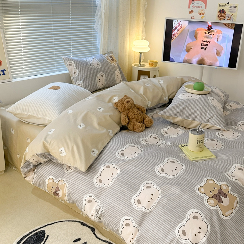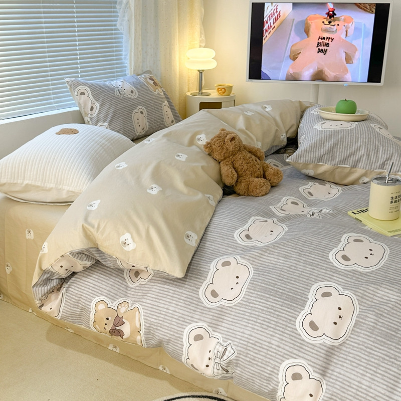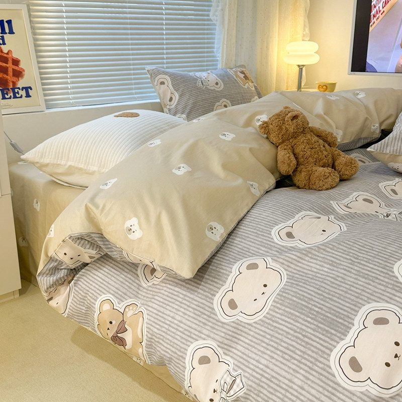 昔可 2023新款全棉卡通系列四件套 蝴蝶结领熊