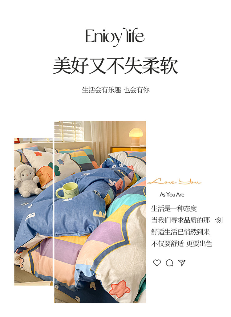 (总)蓝邻家纺 2025新款全棉纯棉磨毛简约系列四件套,白桃麻薯,冰海蓝,豆沙,蓝莓,奶油黄,浅灰,青绿,清新绿,水蓝,水云蓝,桃花粉