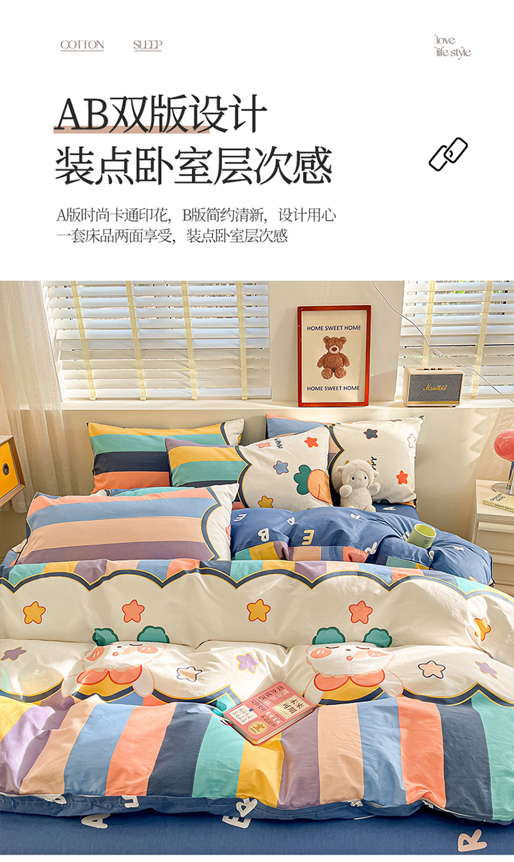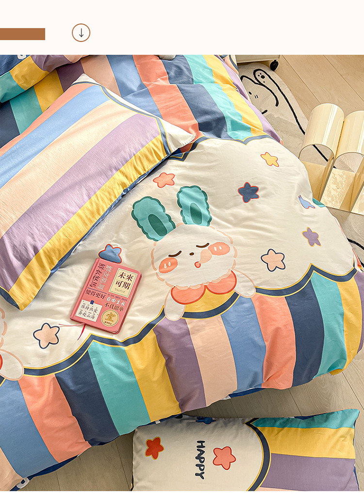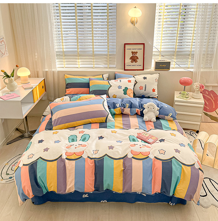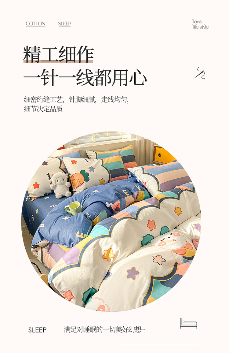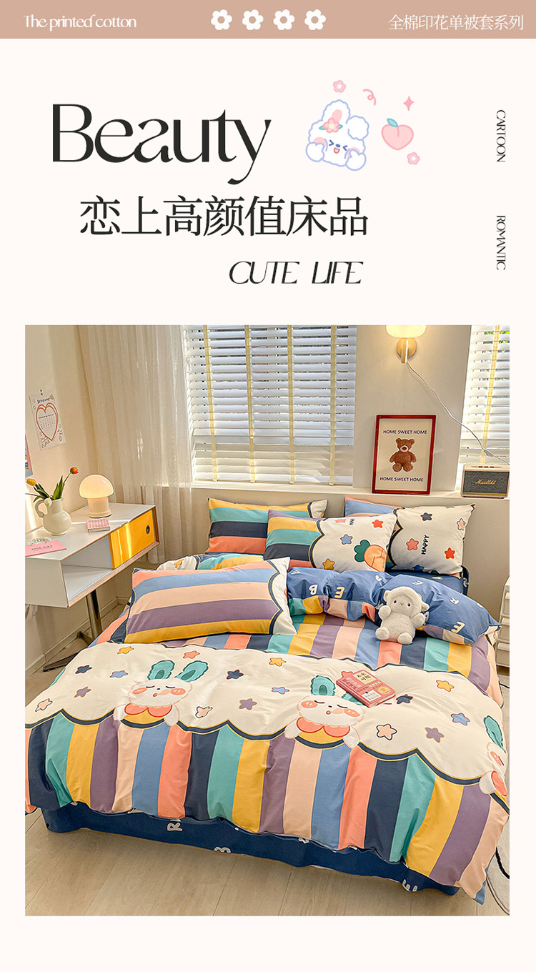 (总)蓝邻家纺 2024新款小清新印花全棉四件套学生宿舍三件套,茶园兔,风翩,机灵兔熊,可妮露,藤蔓兔,筱薇