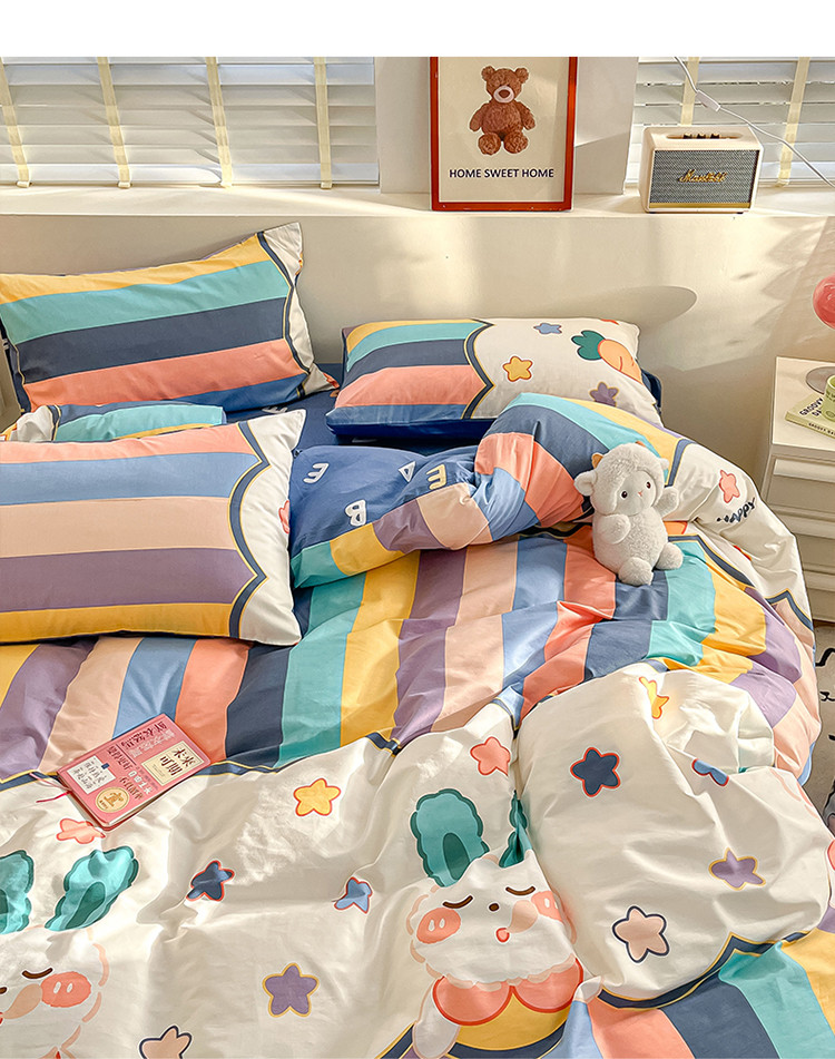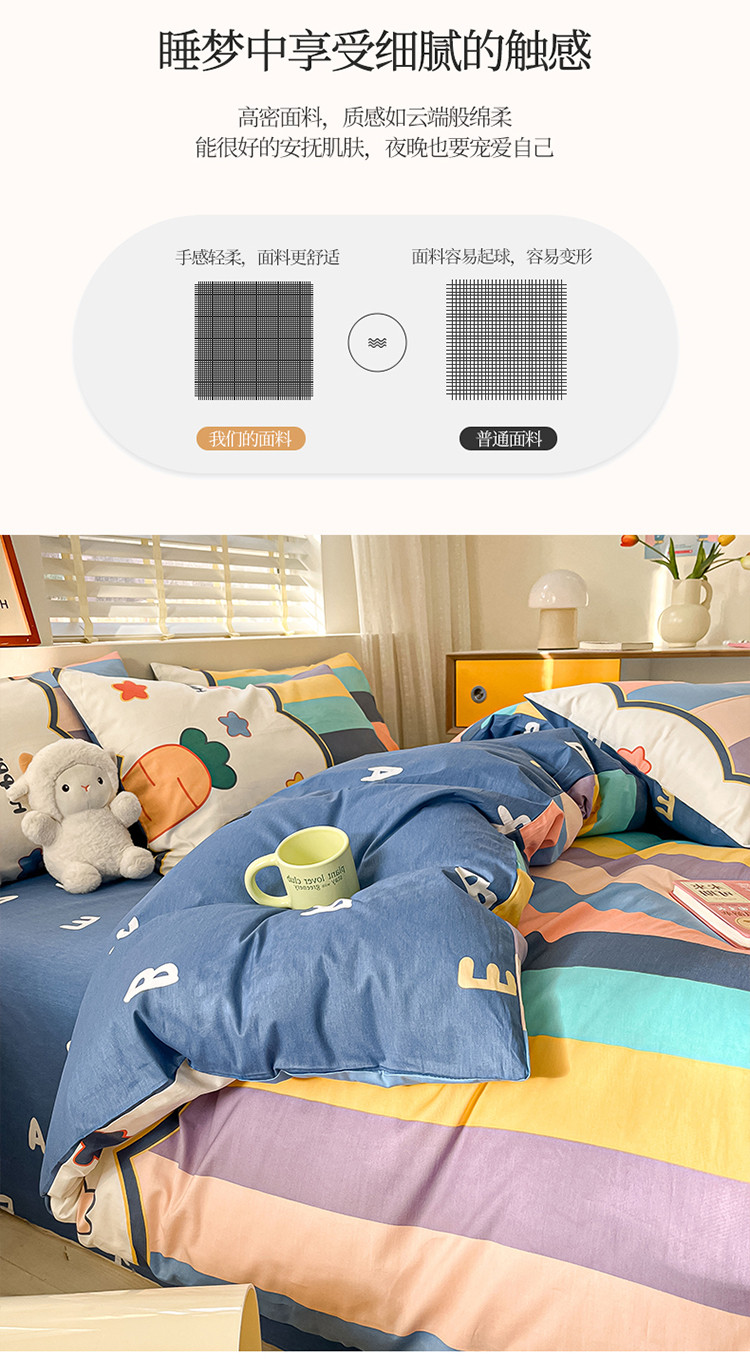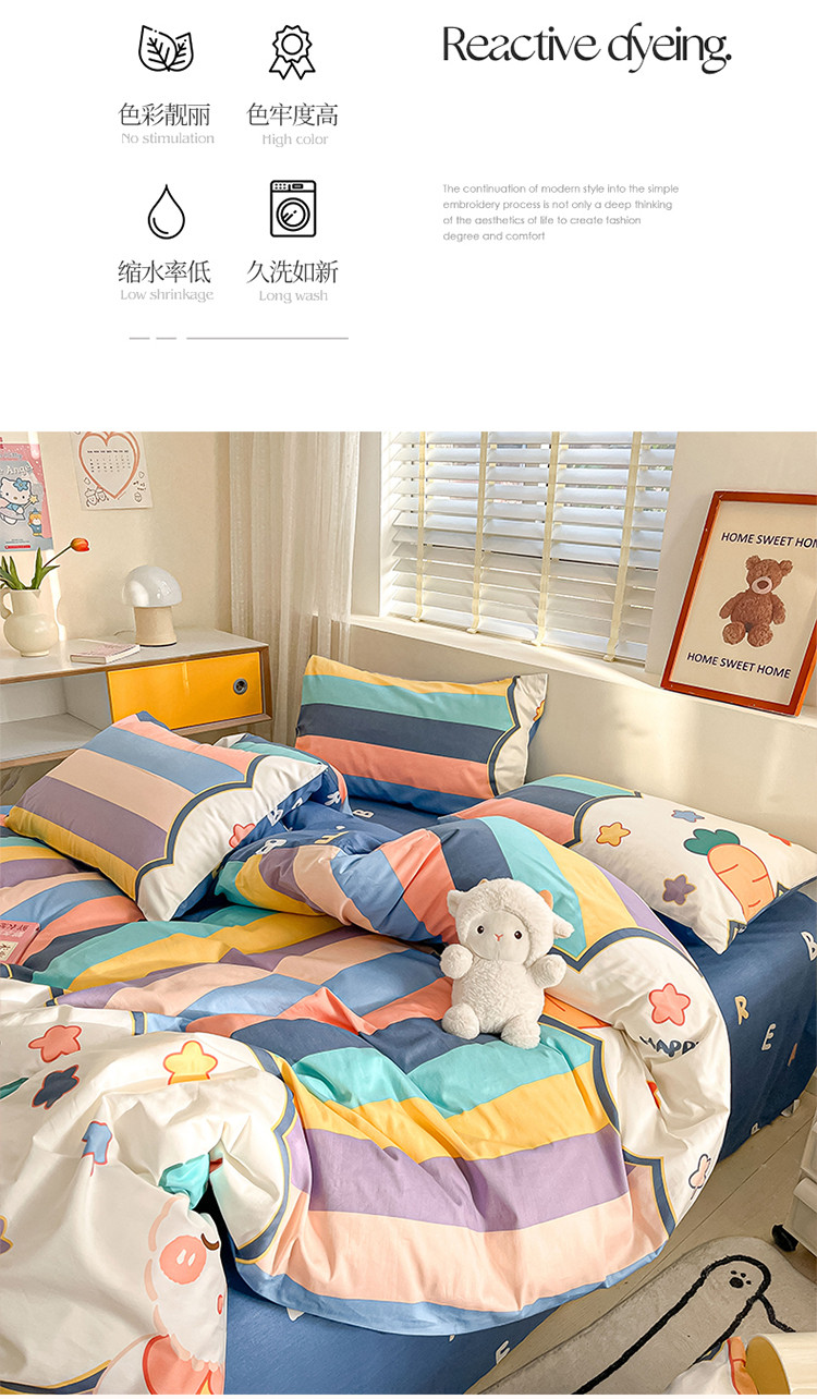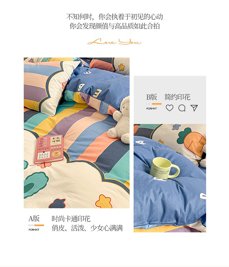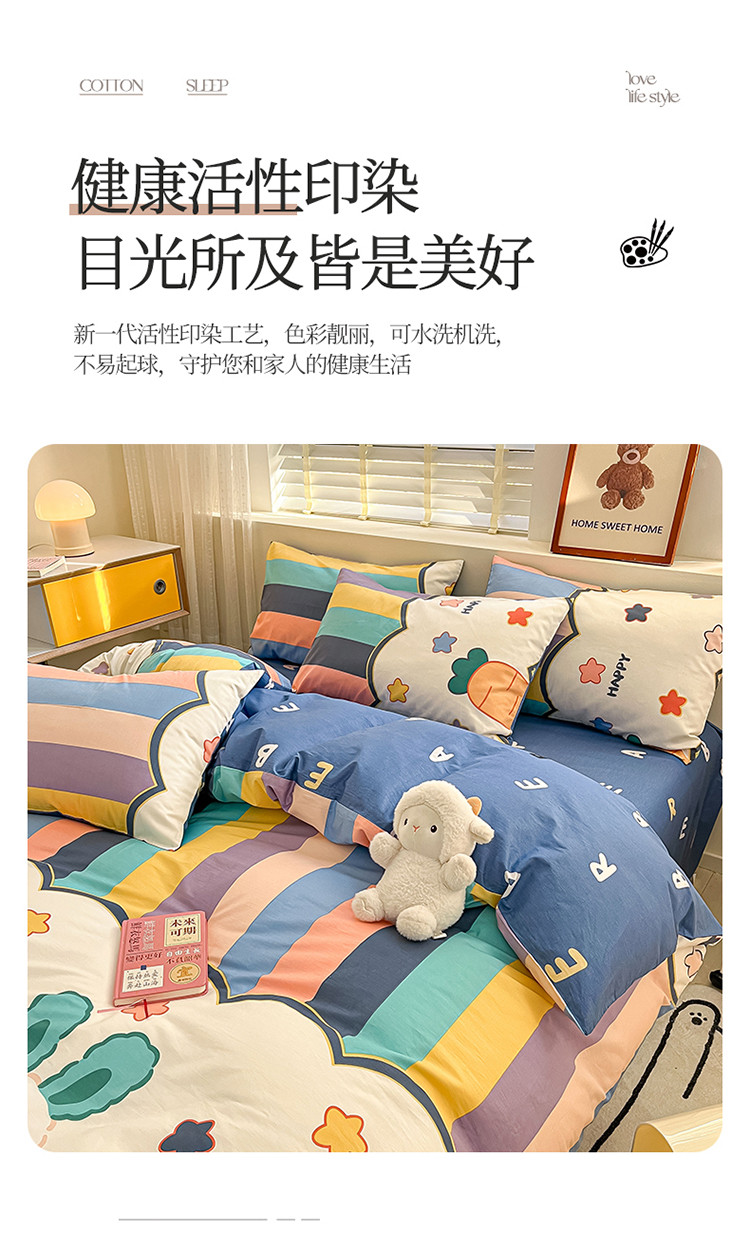 (总)蓝邻家纺 2024新款小清新印花全棉四件套学生宿舍三件套,茶园兔,风翩,机灵兔熊,可妮露,藤蔓兔,筱薇
