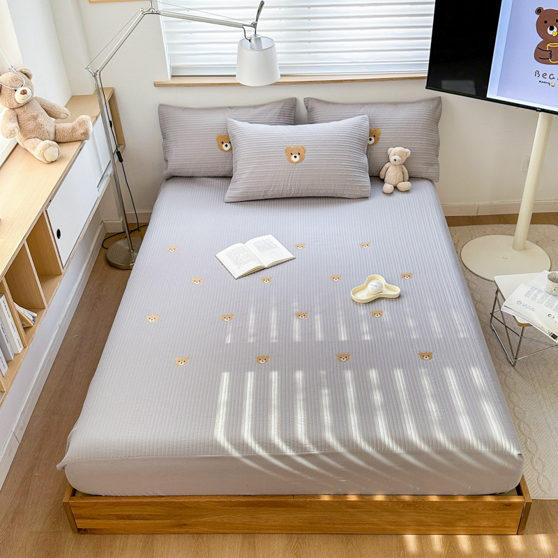 漫调家纺 2023新款ins韩国小熊全棉单品套件系列单床笠 绅士灰