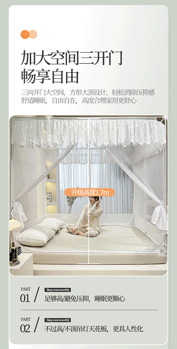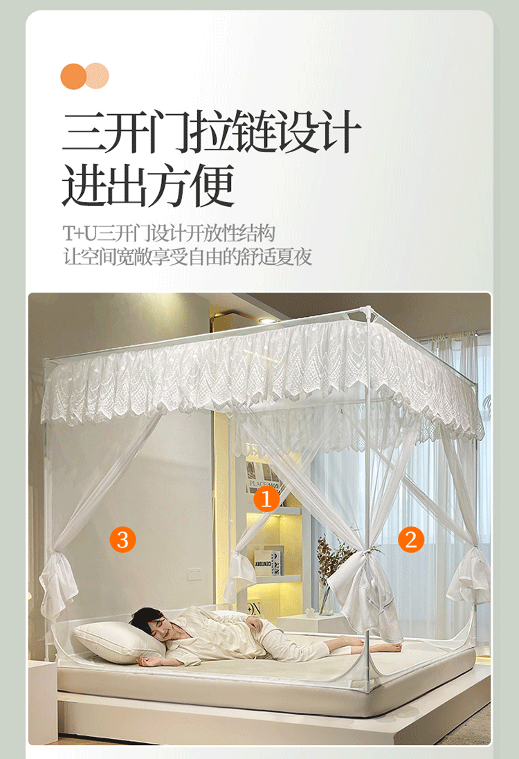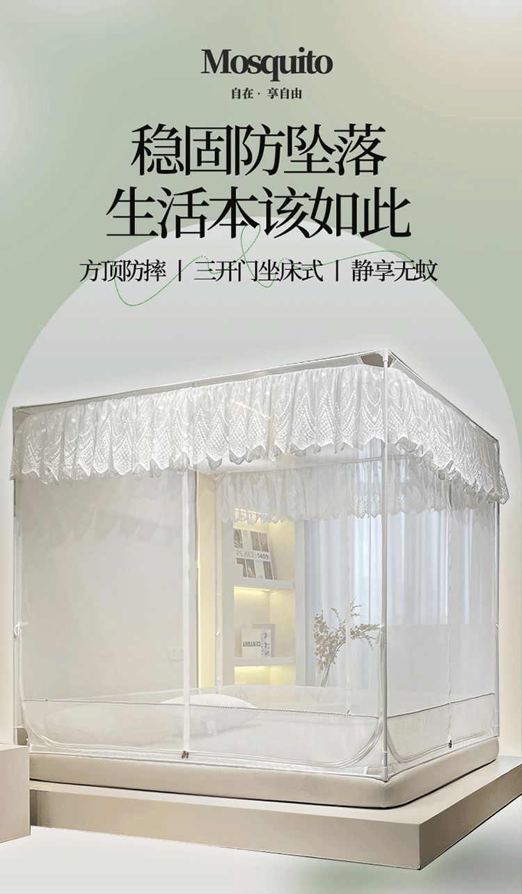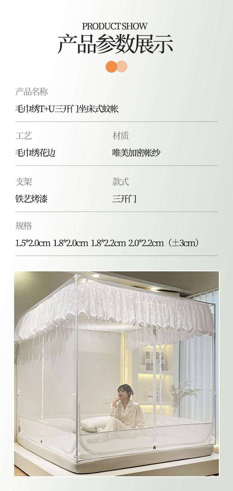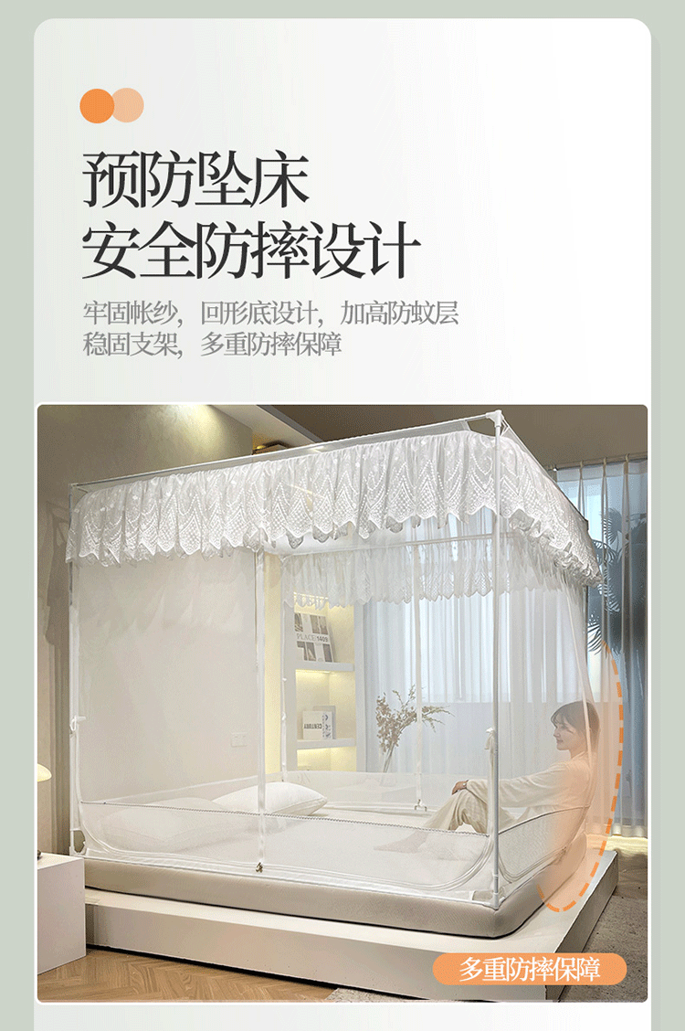(总)夏彩 2025新款浪漫唯美T+U床笠式坐床外穿防摔蚊帐-88610,886610冰海蓝,886610极光白,886610浅粉玉,886610浅水蓝,886610蔷薇粉,886610杏仁黄,886610雅士灰