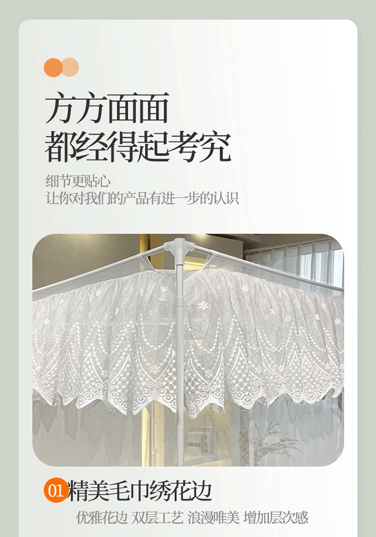 (总)夏彩 2025新款雪纺绣花加柔加密外撑式25烤漆铁艺加粗支架宫廷蚊帐-88612,88612白色,88612卡其,88612蓝,88612蓝灰,88612抹茶绿,88612虾粉,88612杏色,88612玉色