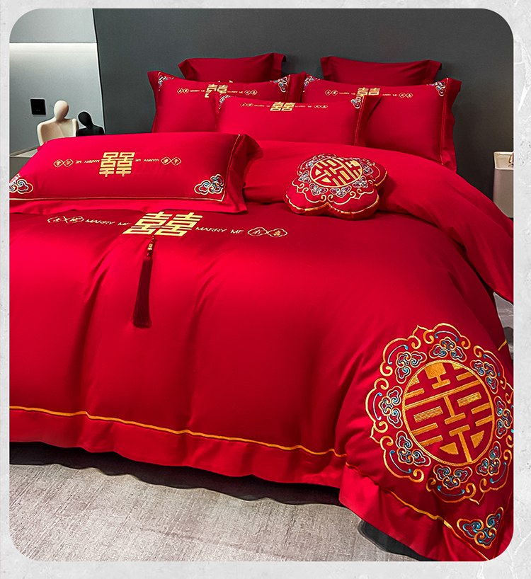 欧乐蒂 2025新款婚庆亲肤棉精美刺绣四件套 吾家有喜