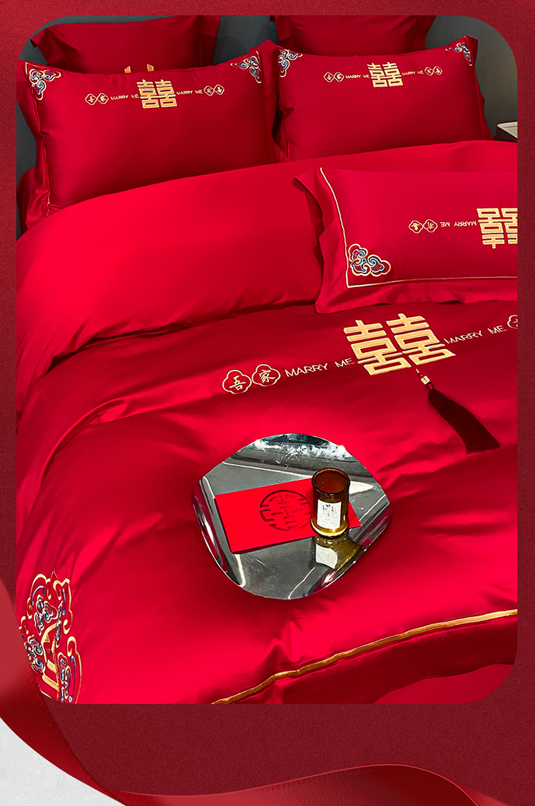 (总)欧乐蒂 2025新款婚庆款牛奶绒刺绣系列四件套-爱相随,爱相随-喜红,爱相随-金