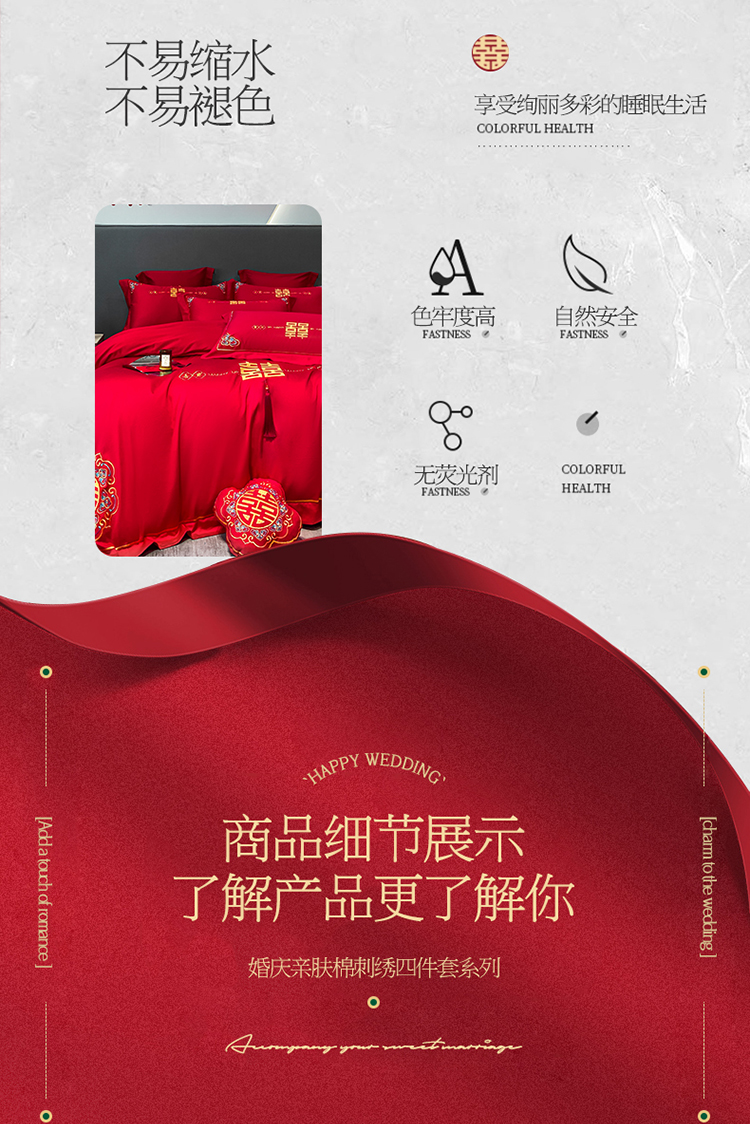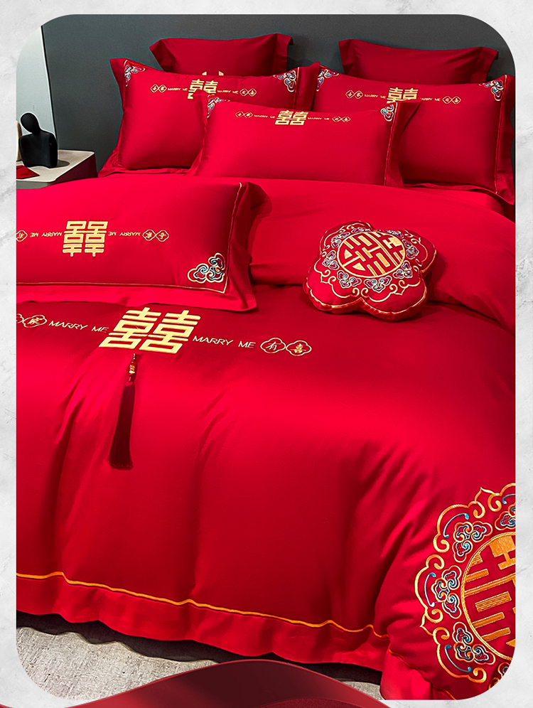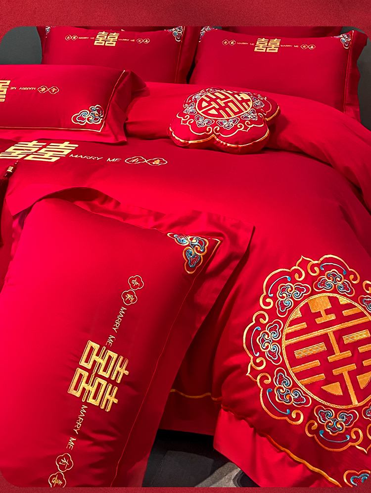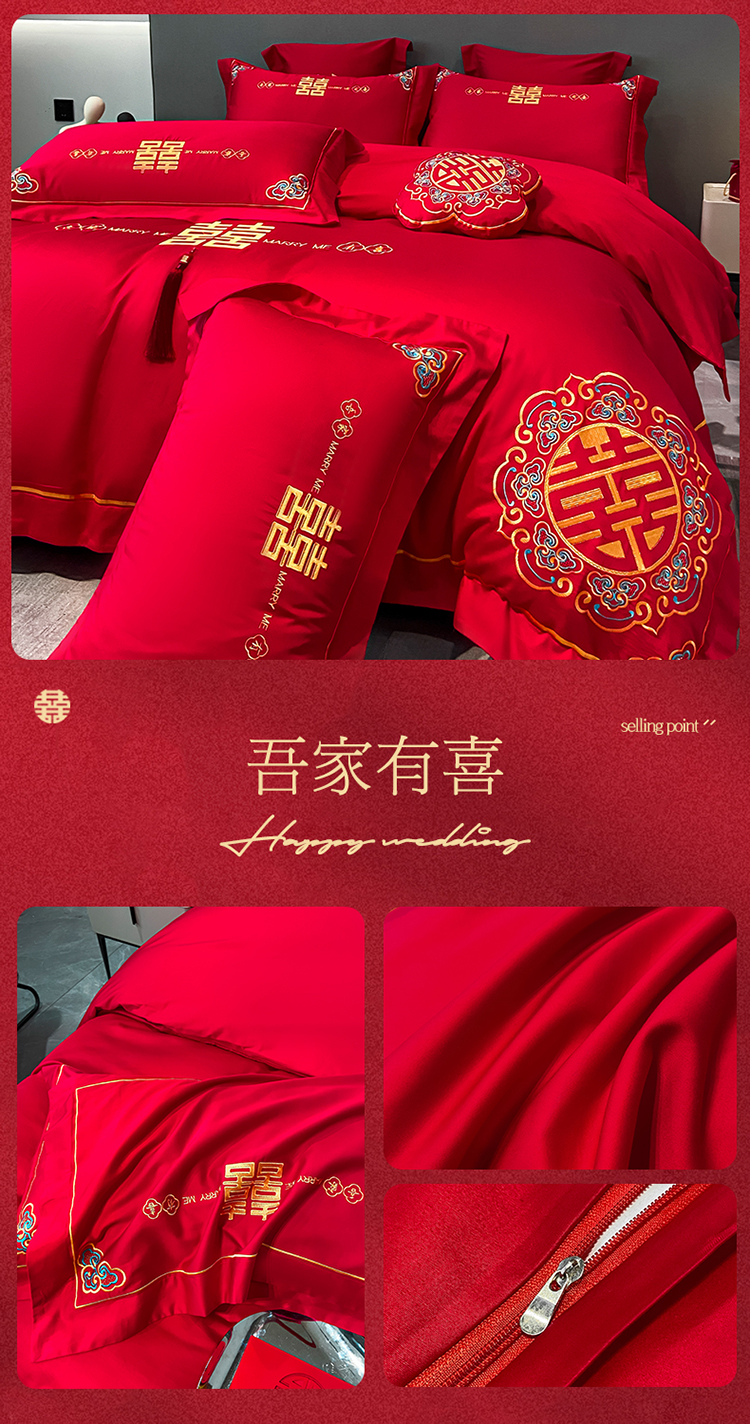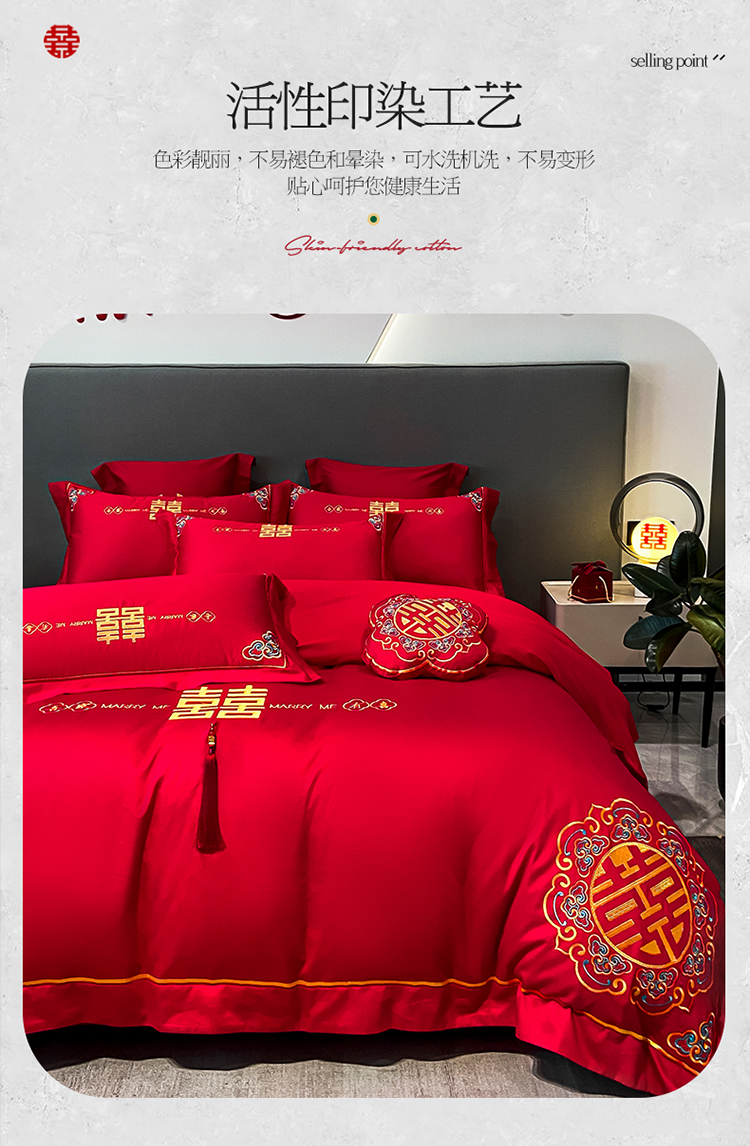 商品名称:欧乐蒂 2025新款婚庆亲肤棉精美刺绣四件套 吾家有喜