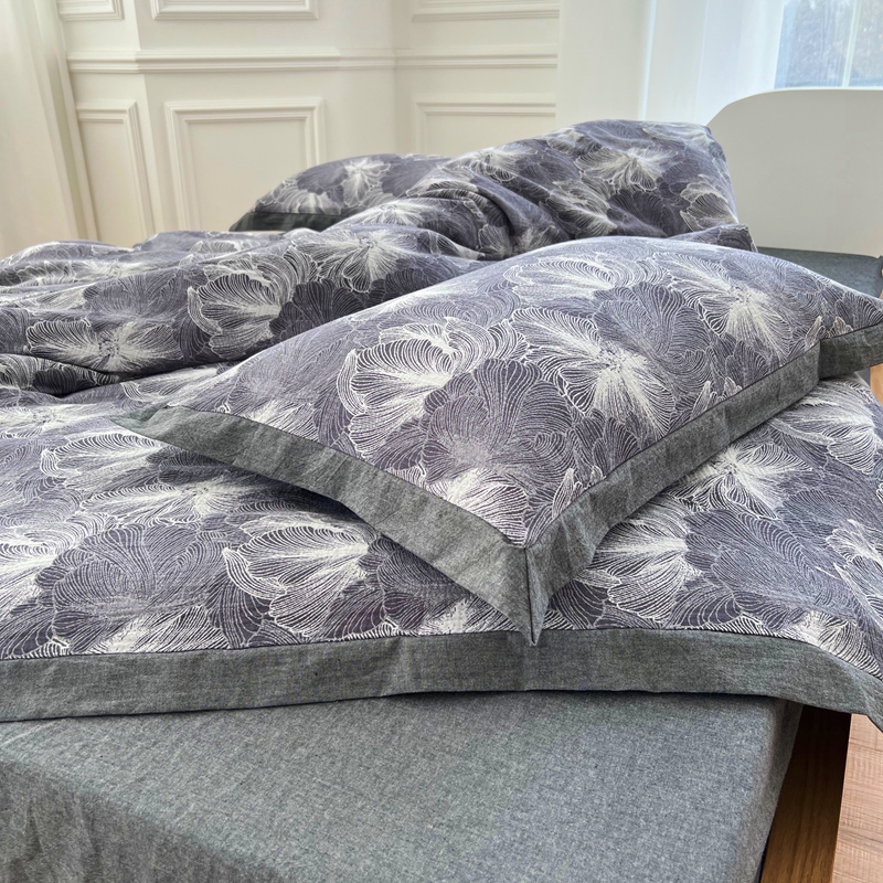 安莱生活 2023新款色织双层纱工艺款宽边高奢四件套 国色天香-深灰