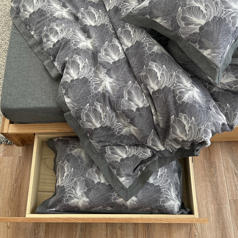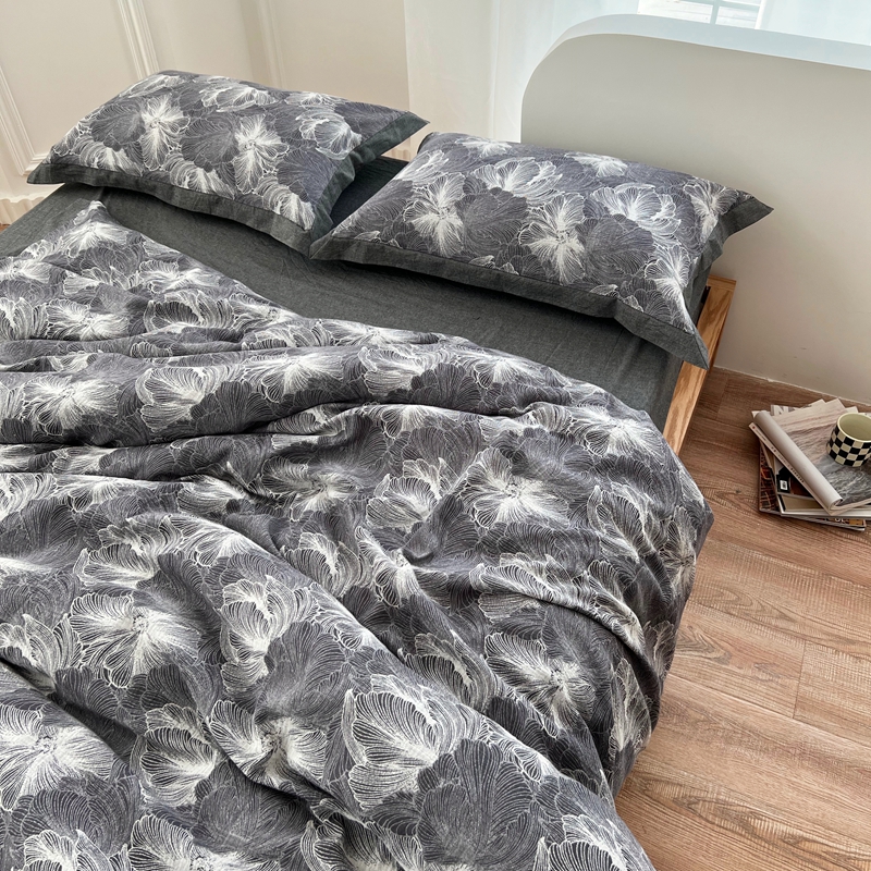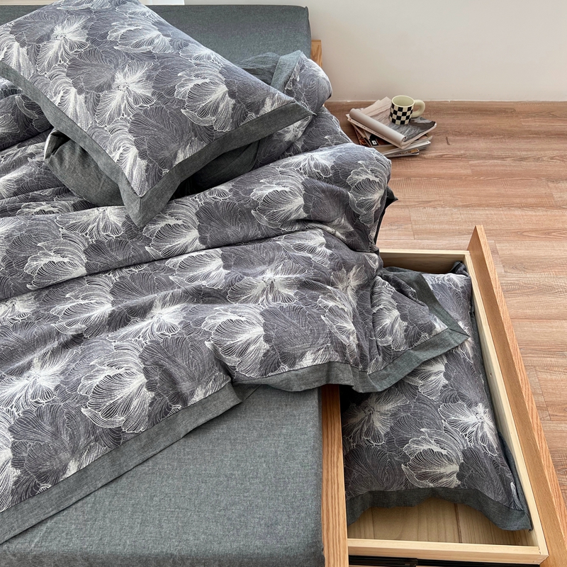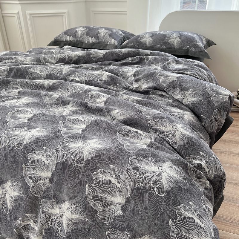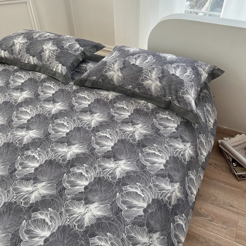 商品名称:安莱生活 2023新款色织双层纱工艺款宽边高奢四件套 国色天香-深灰
