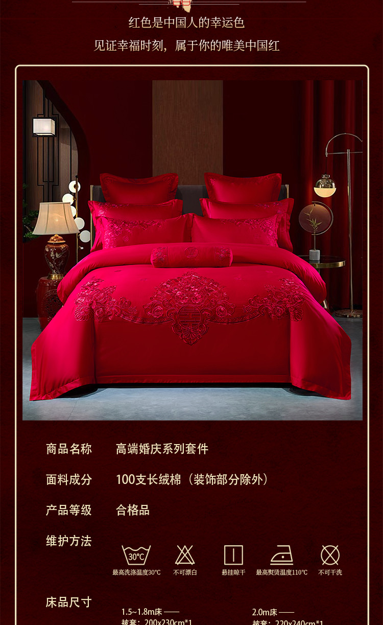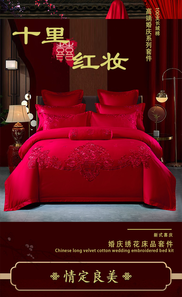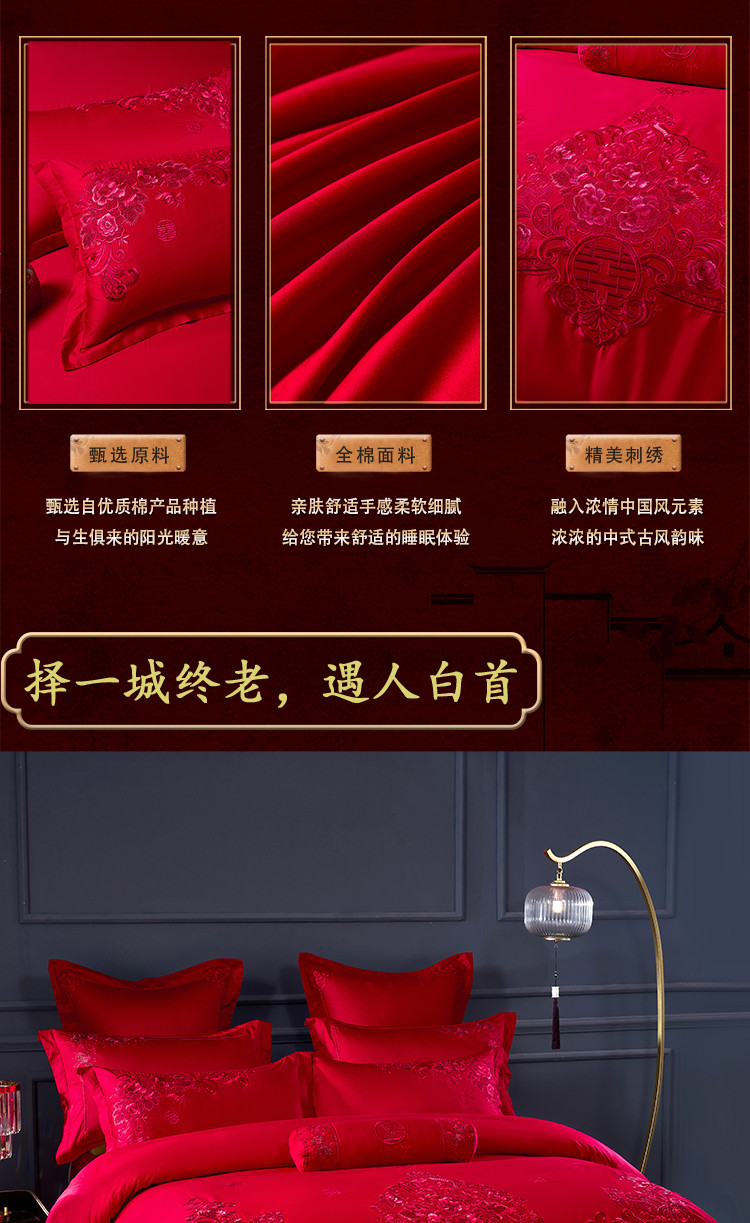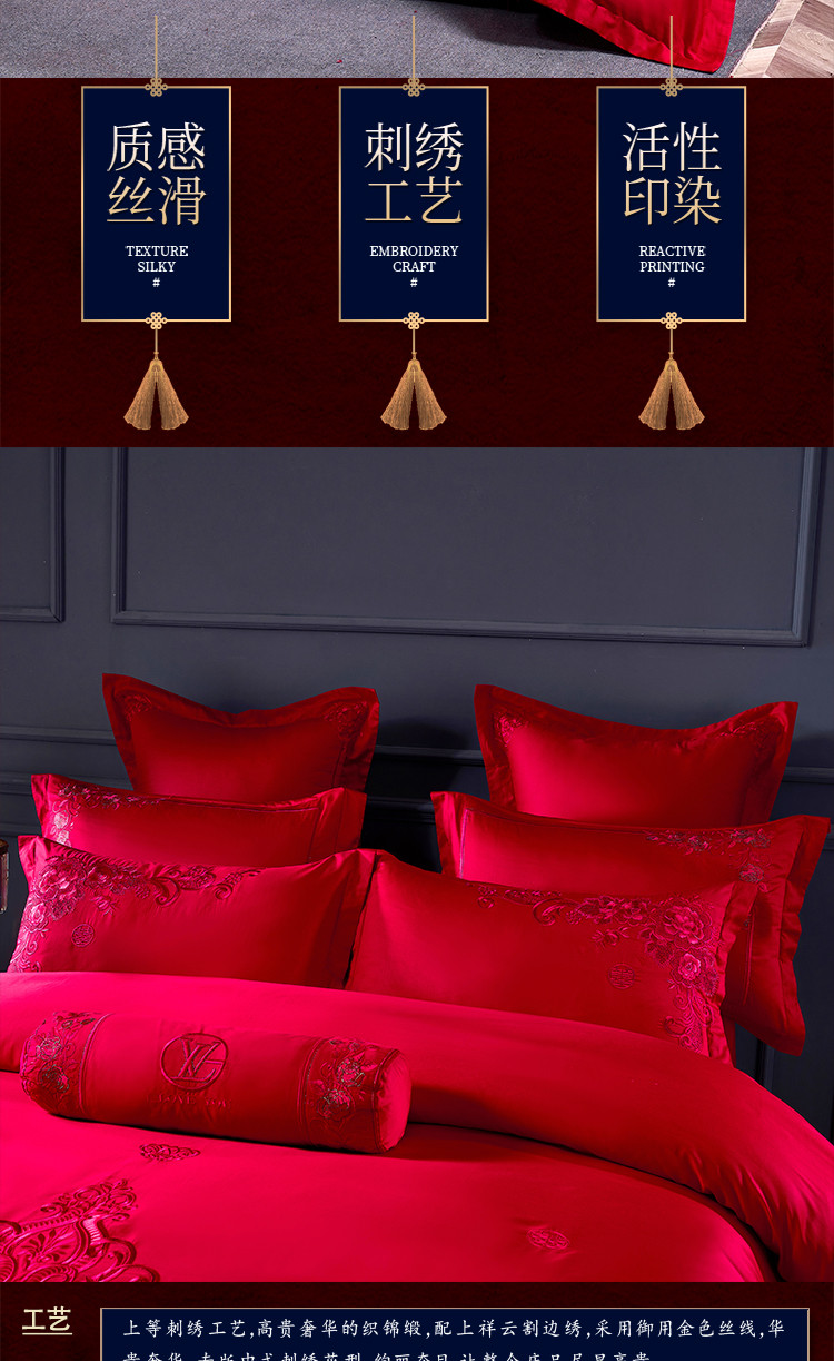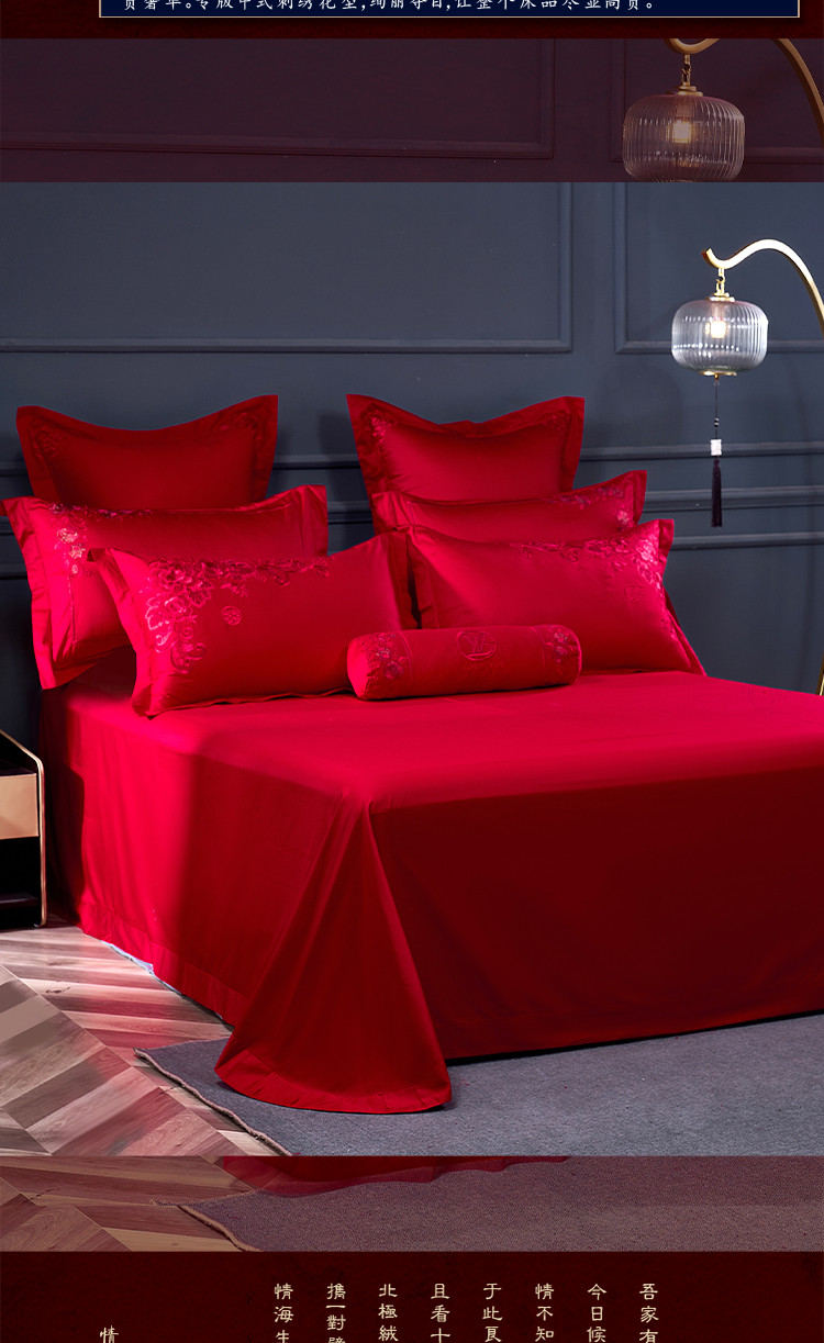 当前位置: 91家纺网 > 商品网购 > 床品套件 > 四件套 > 婚庆四件套 > 振翼 2025新款140s贡缎天丝刺绣四件套 多件套 十里红妆