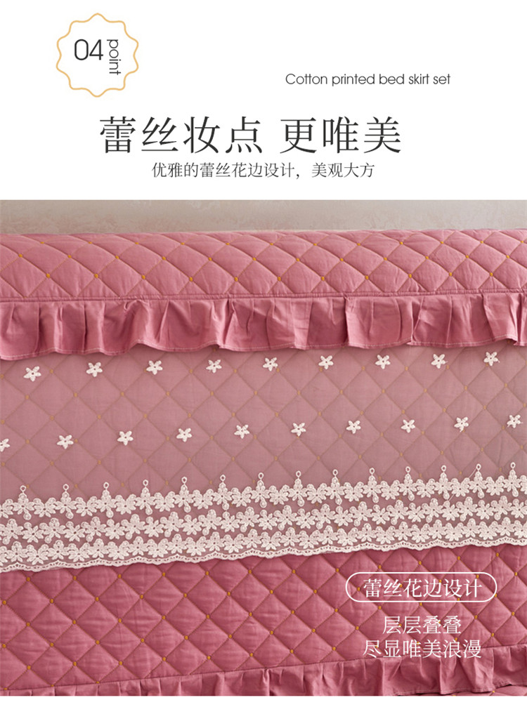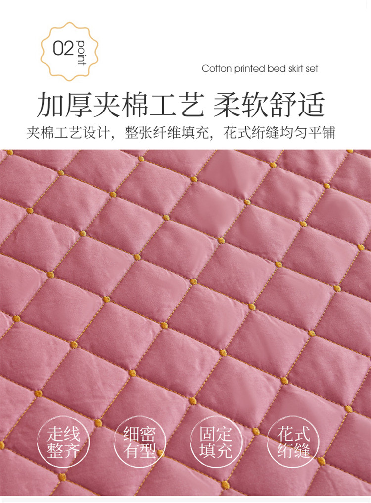 (总)十个点家纺 2025新款千鸟格磨毛绗缝夹棉纯色花边床裙三件套,经典白色,经典兰色,经典浅灰,经典浅驼,经典深灰,经典玉粉