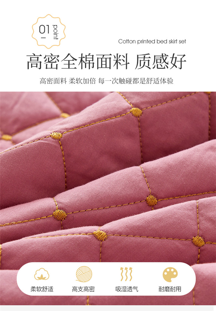 (总)十个点家纺 2025新款加厚磨毛木棉床裙三件套-格小格系列,格小格-粉,格小格-金驼,格小格-咖,格小格-兰,格小格-绿,格小格-玉