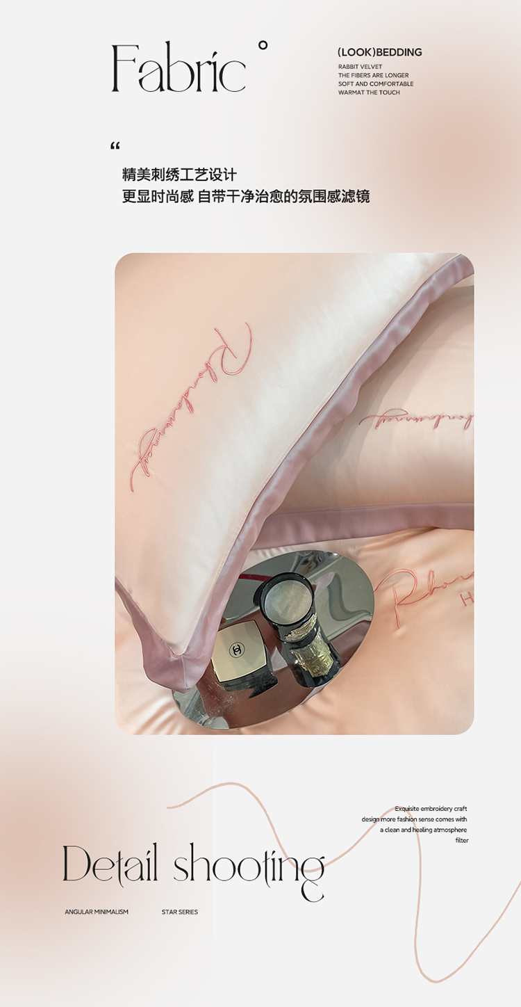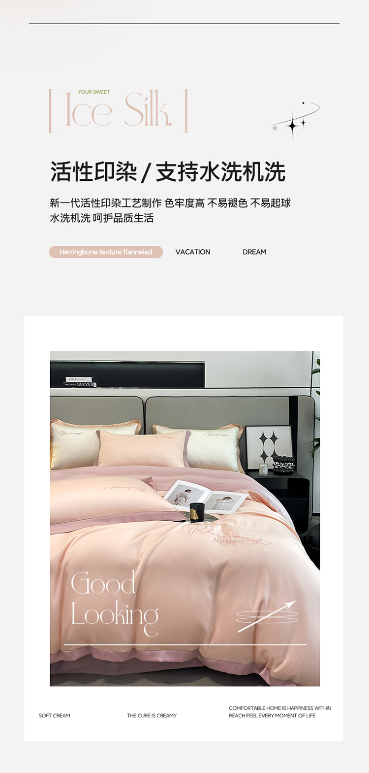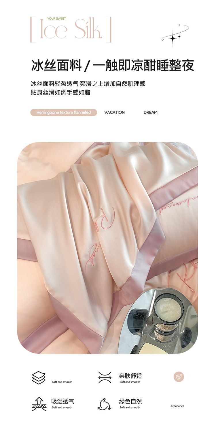 (总)金麦家纺 2025新款冰丝绣花四件套-心愿系列,心愿粉色,心愿燕麦奶,心愿天空蓝,心愿淡雅绿,心愿浅灰